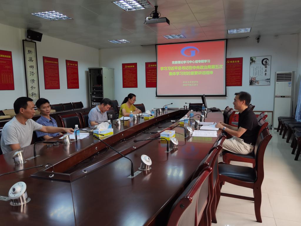 [中国77779193永利 讯]2023年6月25日上午九点,中国77779193永利党委在学院办公楼501室开展2023年6月专题学习会议,学习习近平总书记在中央政治局第五次集体学习时的重要讲话精神。参与本次会议的有学院党委委员、全体中层领导干部、党政办公室负责人、专职组织员等。会议由党委书记黎天宇主持。