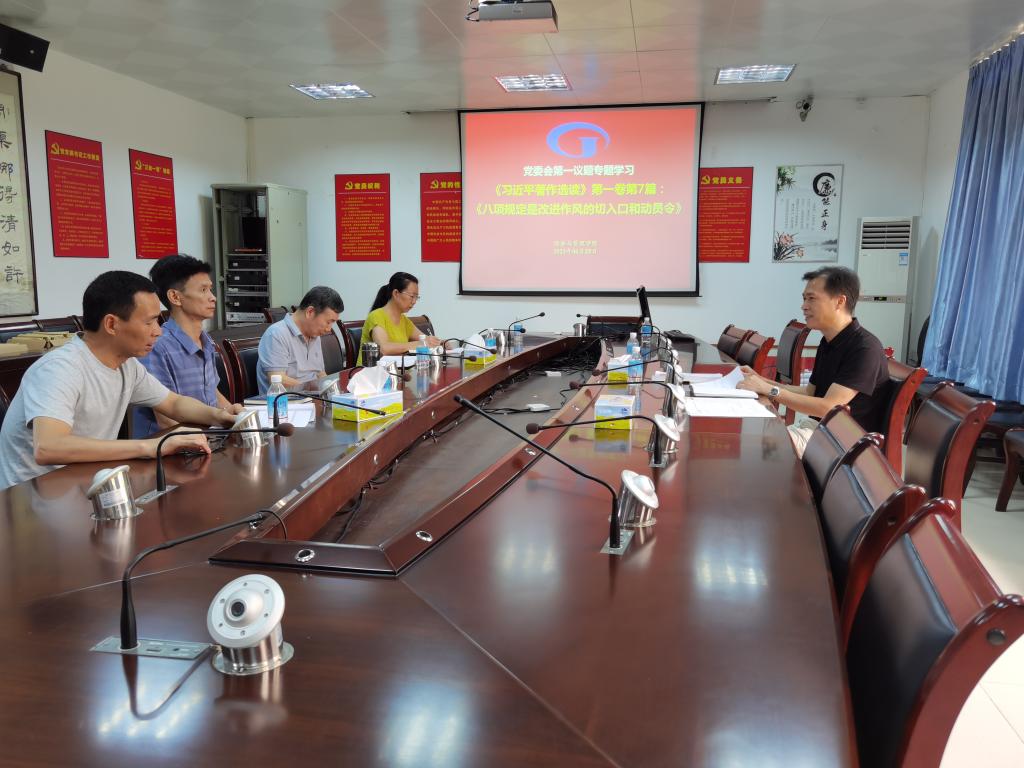会上,黎天宇书记先组织党政班子成员学习《习近平著作选读》第一卷第7篇:《八项规定是改进作风的切入口和动员令》。通过学院党政班子成员轮流领读原文的方式,让在场党员对《八项规定是改进作风的切入口和动员令》有了初步的了解和思考。领读结束后,大家结合实际交流学习心得。