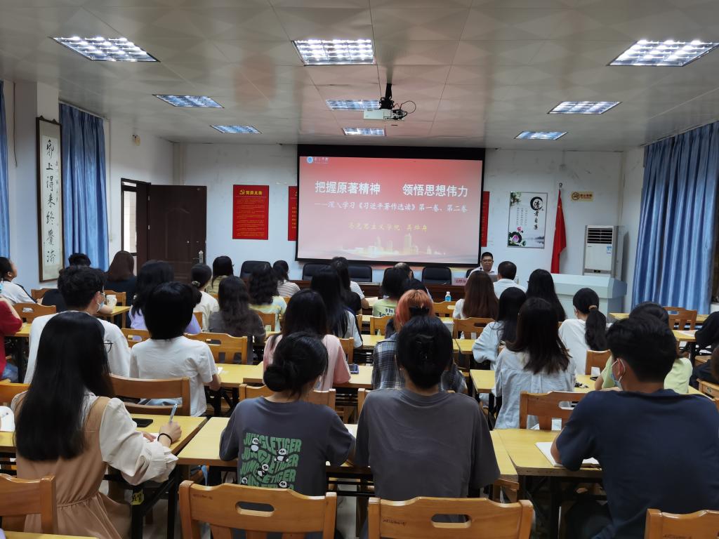 [中国77779193永利 讯]为深入学习宣传贯彻《习近平著作选读》,进一步深化主题教育活动,根据学校党委办《关于组织开展学习贯彻〈习近平著作选读〉第一卷、第二卷校内宣讲活动的通知》要求,我院于6月8日上午特邀请到肇庆市青年讲师团讲师、马克思主义学院吴烨舟博士开展深入学习《习近平著作选读》第一卷、第二卷讲座。学院中层领导干部,师生党支部书记、副书记、支委,学生党员代表、入党积极分子代表、提交入党申请书人员代表等60余人到场聆听。