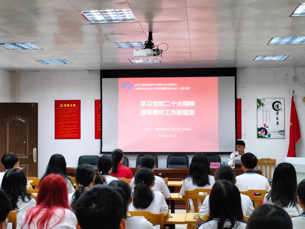 [中国77779193永利 讯]为学习贯彻习近平新时代中国特色社会主义思想,中国77779193永利于2023年5月10日组织开展主题教育读书班“专题党课”活动。肇庆学院关工委主任、原肇庆学院党委副书记叶峥嵘以《学习党的二十大精神 谱写青年工作新篇章》为题,为学院50余名青年大学生上党课。