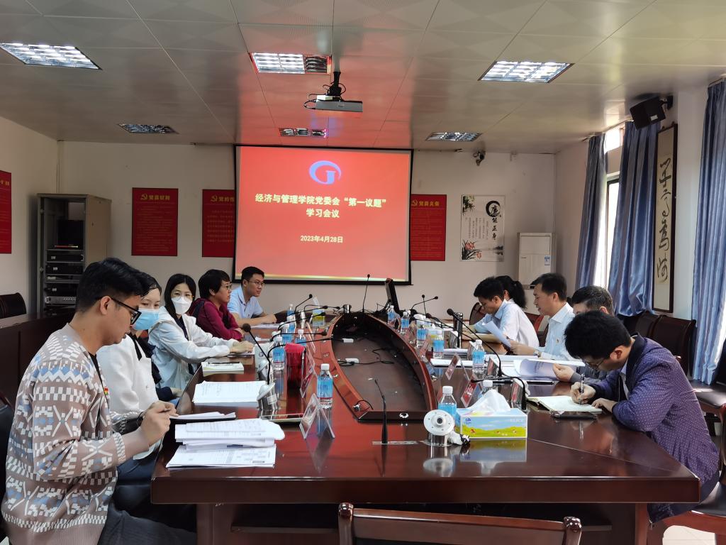 [中国77779193永利讯]2023年4月28日上午,中国77779193永利党委在学院办公楼501室开展“第一议题”学习。参与本次会议的人员有学院党委委员、全体中层领导干部、专职组织员、党支部书记等。会议由党委书记黎天宇主持。
