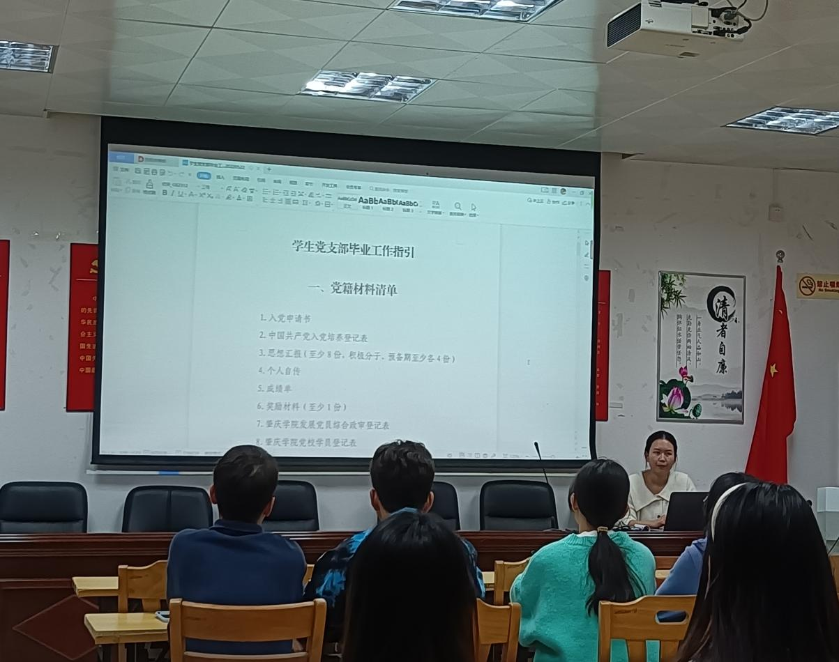 培训会上,王嘉老师首先明确了学生党支部支委的工作职责,对学生党支部的工作进行了详细的介绍。然后对召开2022年度基层党组织专题组织生活会和开展民主评议党员的活动方式、活动程序进行了统一规范和要求。王嘉老师指出,要严格执行党的组织生活制度,全面贯彻习近平新时代中国特色社会主义思想,紧紧围绕学习贯彻党的二十大精神,联系工作、学习的实践进行党性分析,查找思想、作风、能力方面的突出问题,开展批评和自我批评,用好民主评议结果,抓好整改落实。最后王老师对2019级毕业生党员党籍材料整理的工作进行了讲解。各学生党支部支委认真听取了会议安排的相关事项,详细做好会议记录,并针对某些疑问与王老师展开交流讨论。