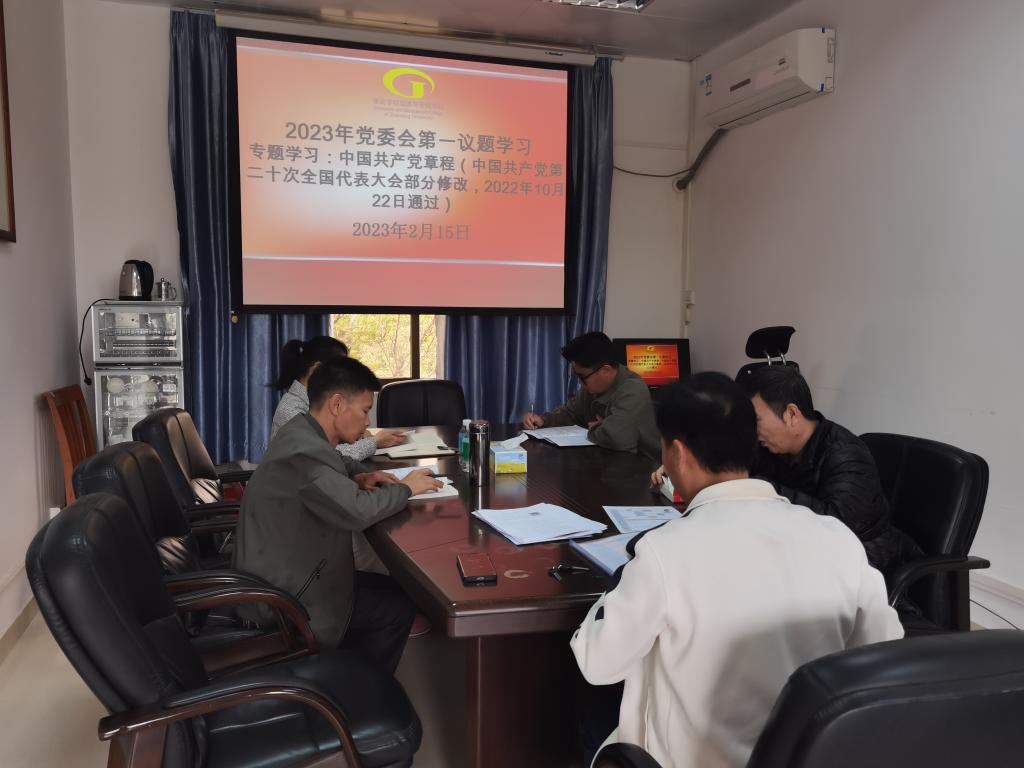 [中国77779193永利讯]2023年2月15日下午,中国77779193永利党委在学院501会议室开展“第一议题”学习活动,旨在进一步提高党员执行党章的自觉性和坚定性。参与本次会议的人员有学院党委委员、全体中层领导干部、专职组织员和办公室负责人。会议由党委书记黎天宇主持。