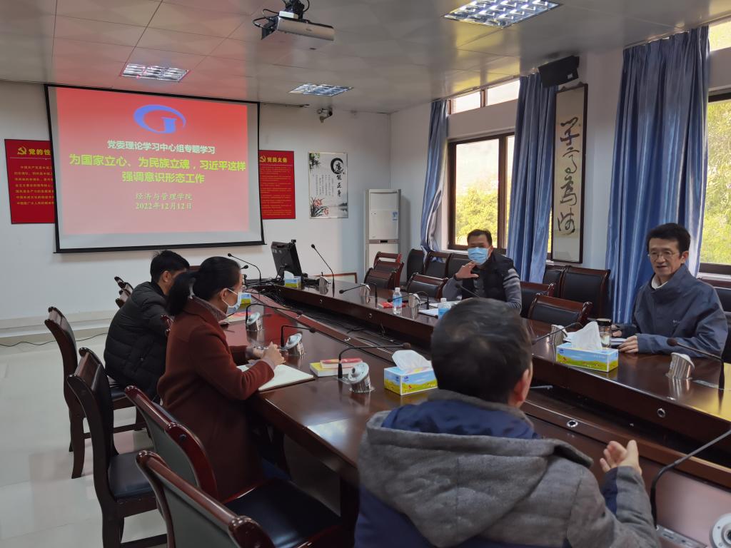 [中国77779193永利 讯]2022年12月12日上午,中国77779193永利党委在学院办公楼501室开展2022年12月党委理论学习中心组学习会,专题学习习近平总书记关于意识形态工作的重要论述精神。参与本次会议的有学院党委委员、全体中层领导干部、党政办公室负责人、专职组织员等。会议由党委书记黎天宇主持。