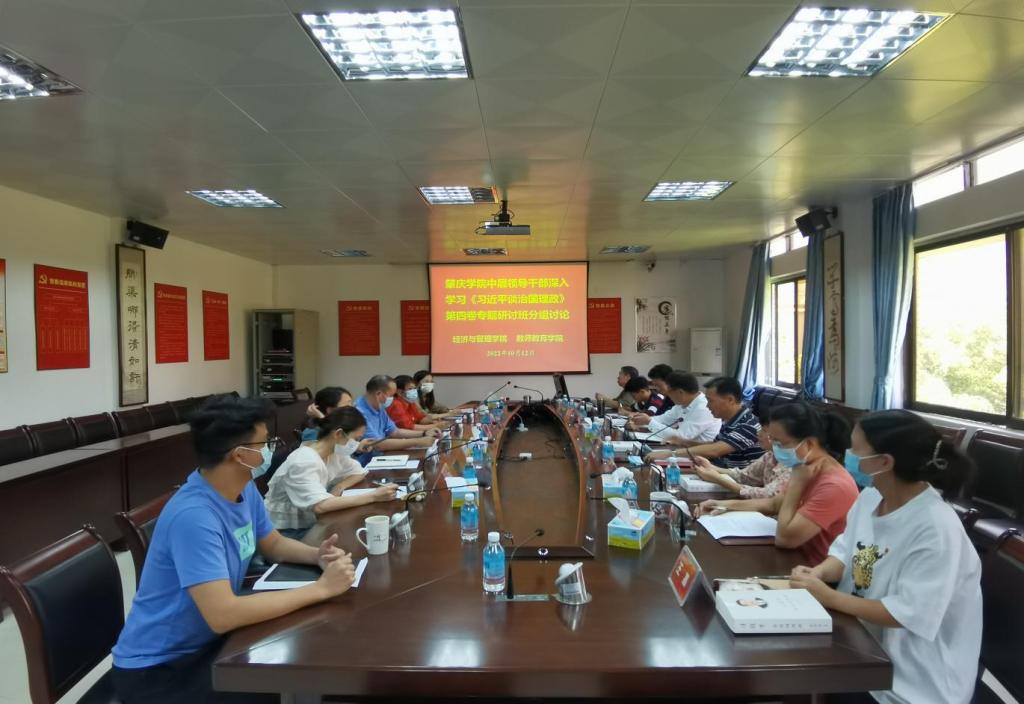 [中国77779193永利 讯]根据《关于举办中层领导干部深入学习〈习近平谈治国理政〉第四卷专题研讨班的通知》(肇学委办〔2022〕29 号)要求和有关活动安排,10月12日下午中国77779193永利与教师教育学院在中国77779193永利501会议室开展《习近平谈治国理政》第四卷专题研讨班分组讨论活动。参会人员有两院的中层领导干部、党支部书记和专职组织员等。会议由中国77779193永利党委书记黎天宇主持。