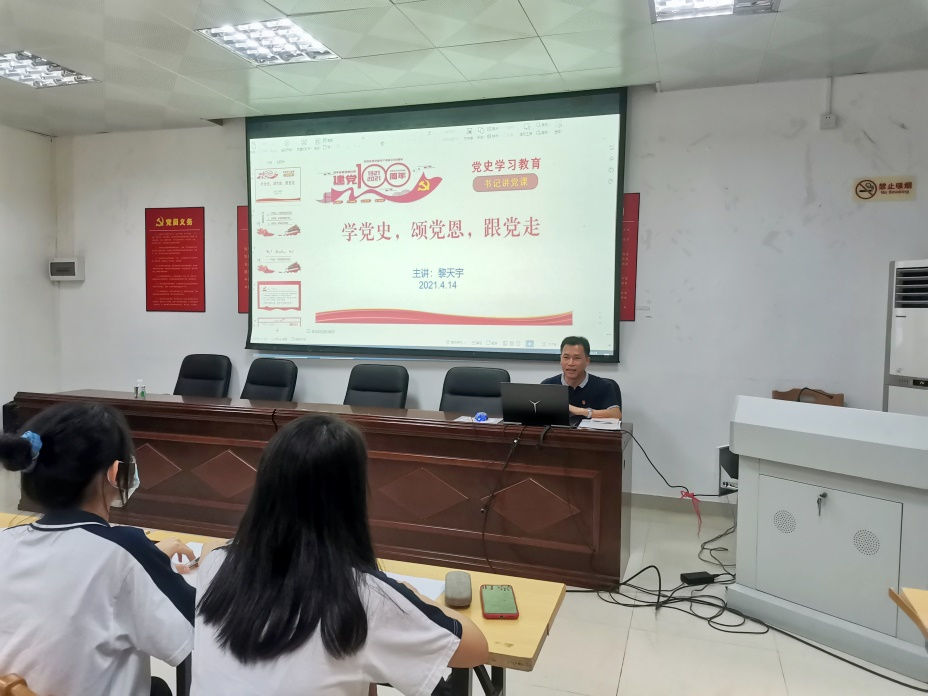 党委书记黎天宇2021年4月14日中午在学院办公楼一楼多功能室开展题为《学党史,颂党恩,跟党走》的党课教育,2021年上半年新发展的入党积极分子共56人参加了党课。黎书记带领全员从理论、实践、历史、现实四个维度深入学习,回顾中国共产党百年奋斗的光辉历程和伟大贡献以及学习中国共产党在长期奋斗中铸就的伟大精神,与大家纵览百年党史中重大、重要和具有深远历史意义的革命事件学习了在筚路蓝缕、风雨兼程的壮阔征程中形成的井冈山精神、长征精神、抗美援朝精神、“两弹一星”精神、载人航天精神、伟大抗疫精神、脱贫攻坚精神等。党课最后,黎书记给予各支部入党积极分子殷切的寄语,希望同学们能够深刻理解和发扬我们党在百年奋斗历程中形成的伟大精神,从中汲取初心动力,夯实知行合一的作风。黎书记的这节思政课,对于初踏党途的入党积极分子,非常有针对性,教学效果非常明显。