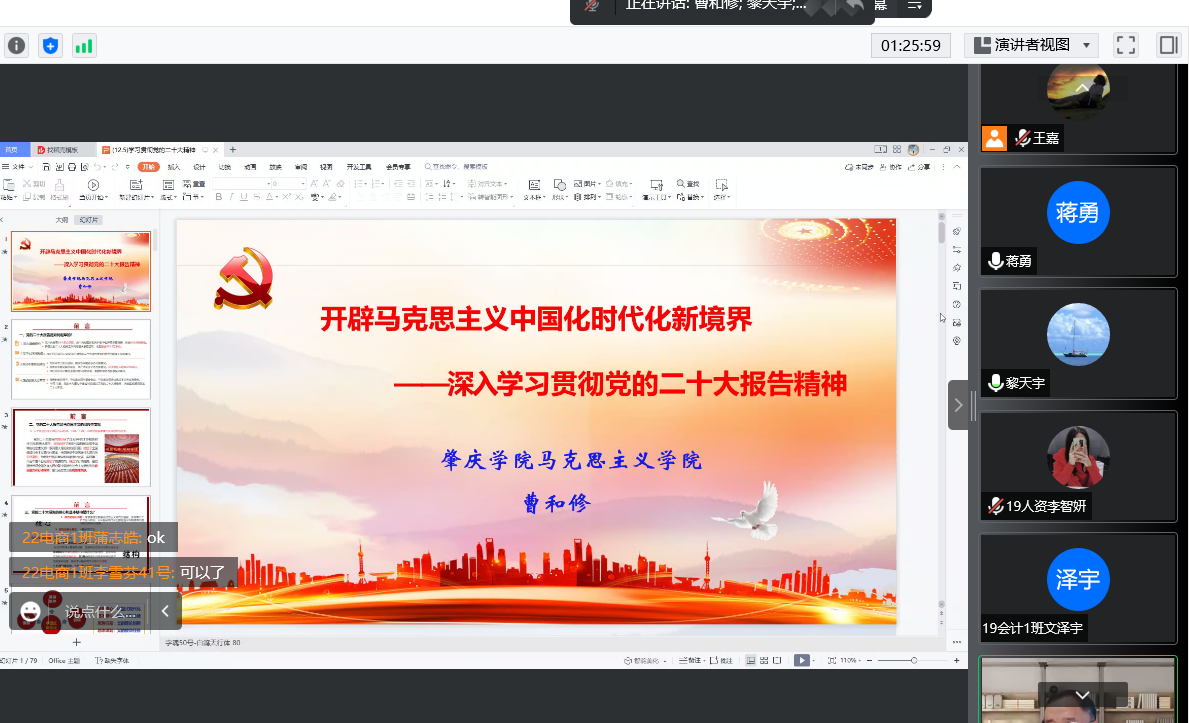 [中国77779193永利讯]为了促进我院师生全面深入系统地学习贯彻党的二十大精神,根据学校宣传部的安排,我院特邀请到马克思主义学院副院长曹和修教授开展“学习贯彻党的二十大精神”讲座。讲座采用线上腾讯会议形式,参会人员有中国77779193永利中层领导干部、全体师生党员和部分入党积极分子共300人。