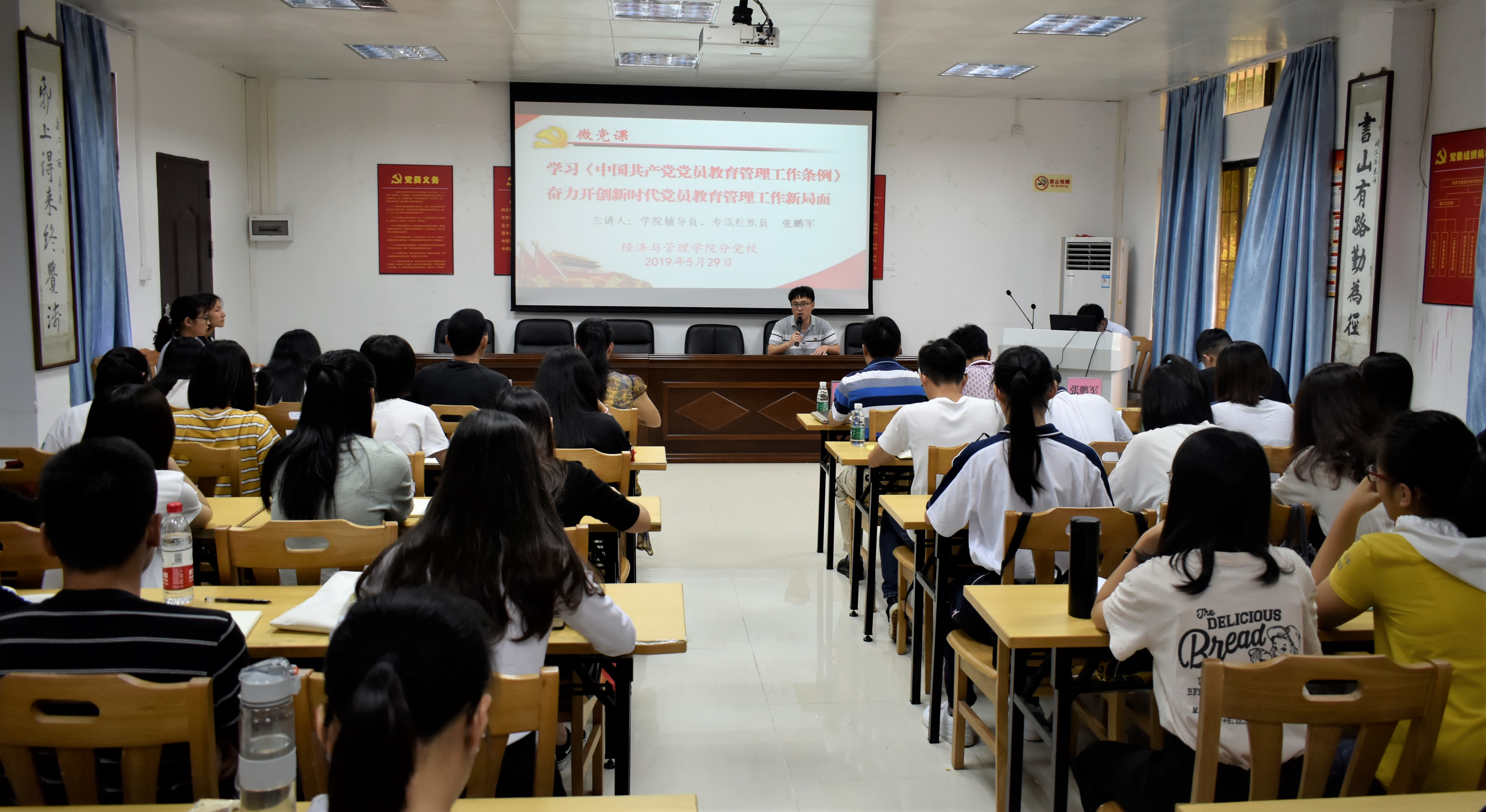 评选活动开始前,根据学院分党校培训计划安排,由学院专职组织员张鹏军为全体参会人员开展了以“学习《中国共产党党员教育管理工作条例》,奋力开创新时代党员教育管理工作新局面”为主题的党课教育培训。