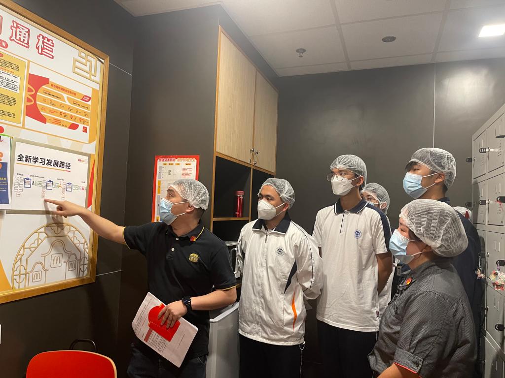 接着,30名学生分成四组,分组参观企业文化、工作环境及后厨制餐流程。