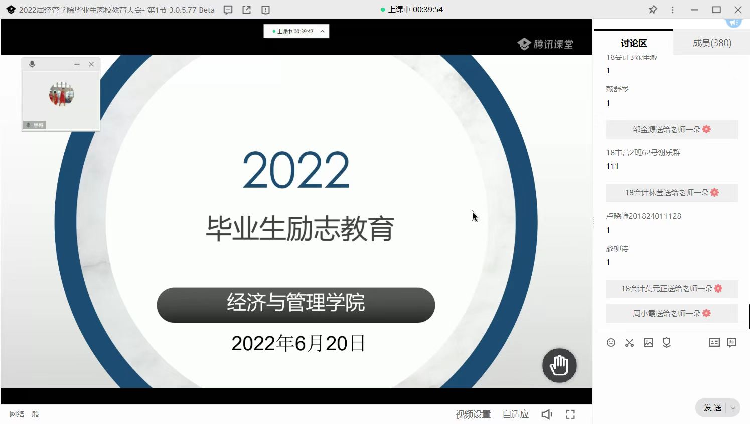 6月20日,中国77779193永利利用腾讯课堂平台,以“云会议”的形式举行2022届毕业生离校教育大会,学院领导、辅导员老师、全体2022届毕业生参与。