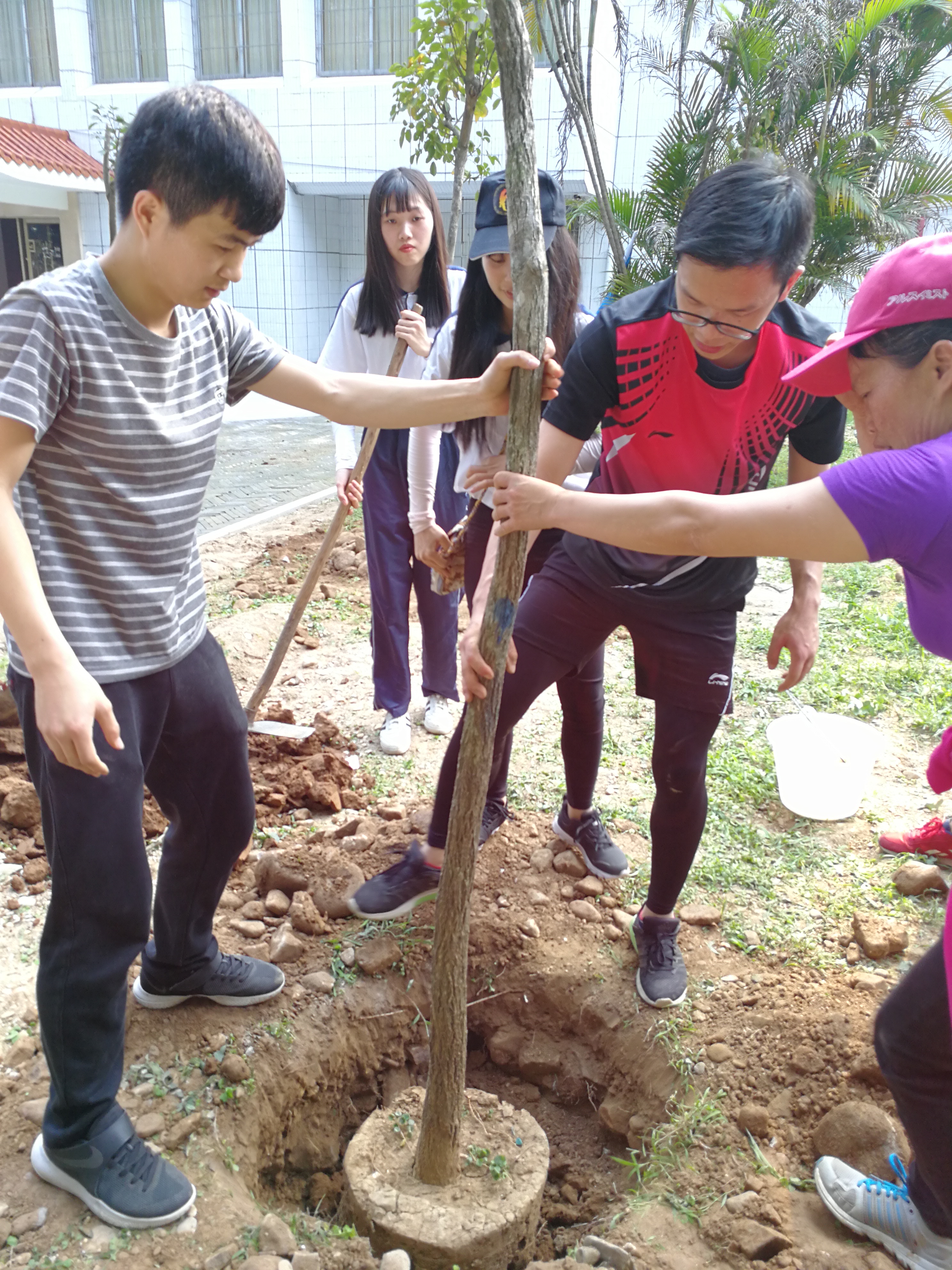 活动开始后,大家手持铁锹和水桶,干劲十足,将一颗颗充满生机和希望的树苗植入坑内,种完树后,同学们又为它们浇灌生命之水。大家看着那一片自己亲手种下的树苗在微风中摇曳,无一不露出幸福的笑容。最后所有成员与小树苗们进行了合影。