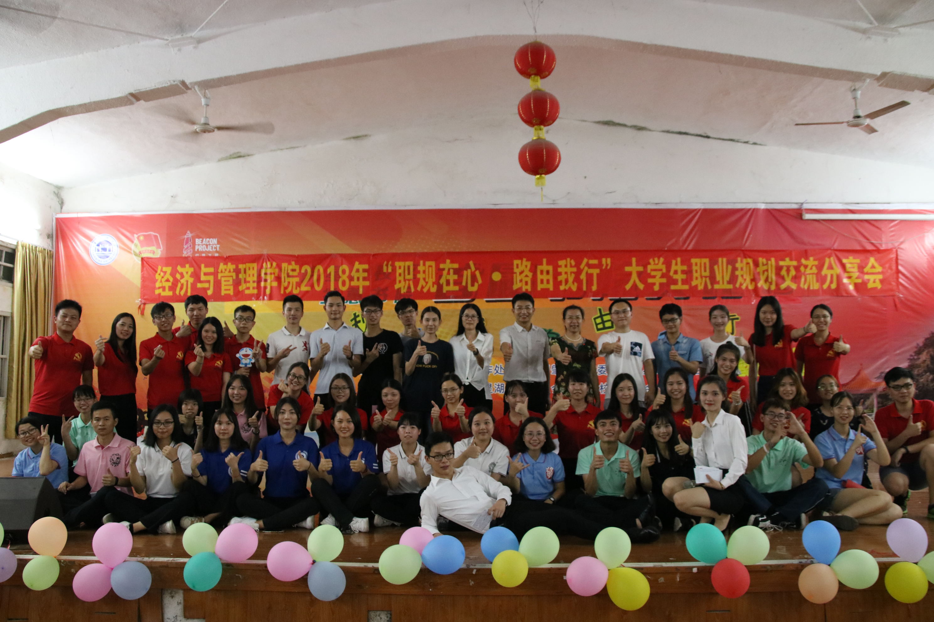 [中国77779193永利 讯](记者 梁家翠)为全面贯彻落实党的十九大精神,以习近平新时代中国特色社会主义思想为指导,深入贯彻习近平总书记系列重要讲话精神,增强学院大学生职业生涯规划意识,提高学生日后择业及就业的综合能力,中国77779193永利于5月23日晚上19:00-21:30在星湖校区小礼堂举办2018年大学生职业规划交流分享会,出席此次交流会的有学院党委副书记颜春萍、肇庆市商务局对外联络科欧裕贵科长、肇庆市阿拉丁电子商务有限公司负责人冼升豪、考取汕头大学硕士研究生王国鑫、考取广州海事局公务员王中晖以及学院辅导员团队和2017级全体学生。