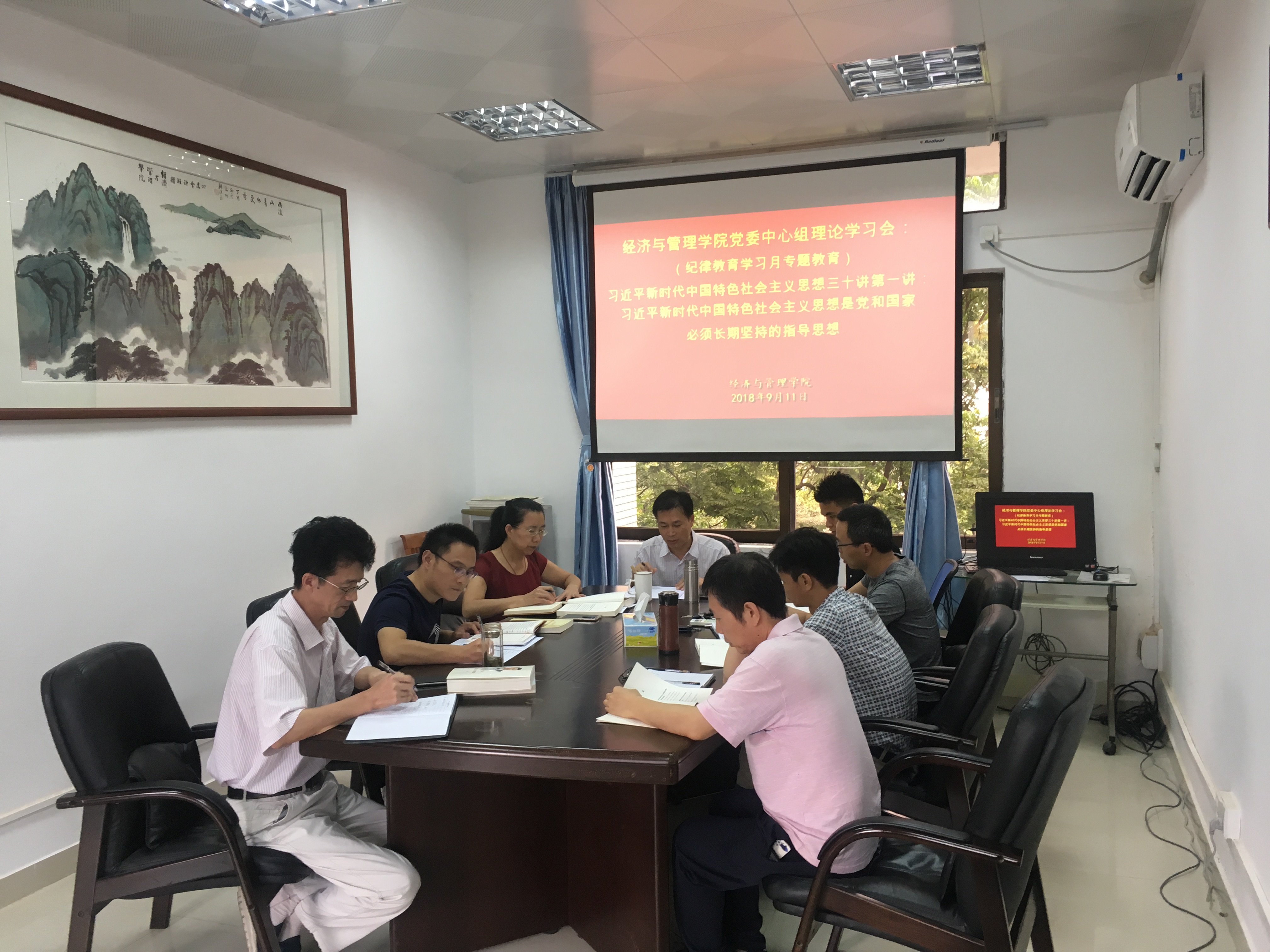 (本网讯)911日下午,我院在410小会议室召开党委理论中心组纪律教育专题学习会暨第一议题学习会。本次会议由党委书记黎天宇主持,学院党政领导班子成员、党委委员及专职组织员等人员参加了会议。