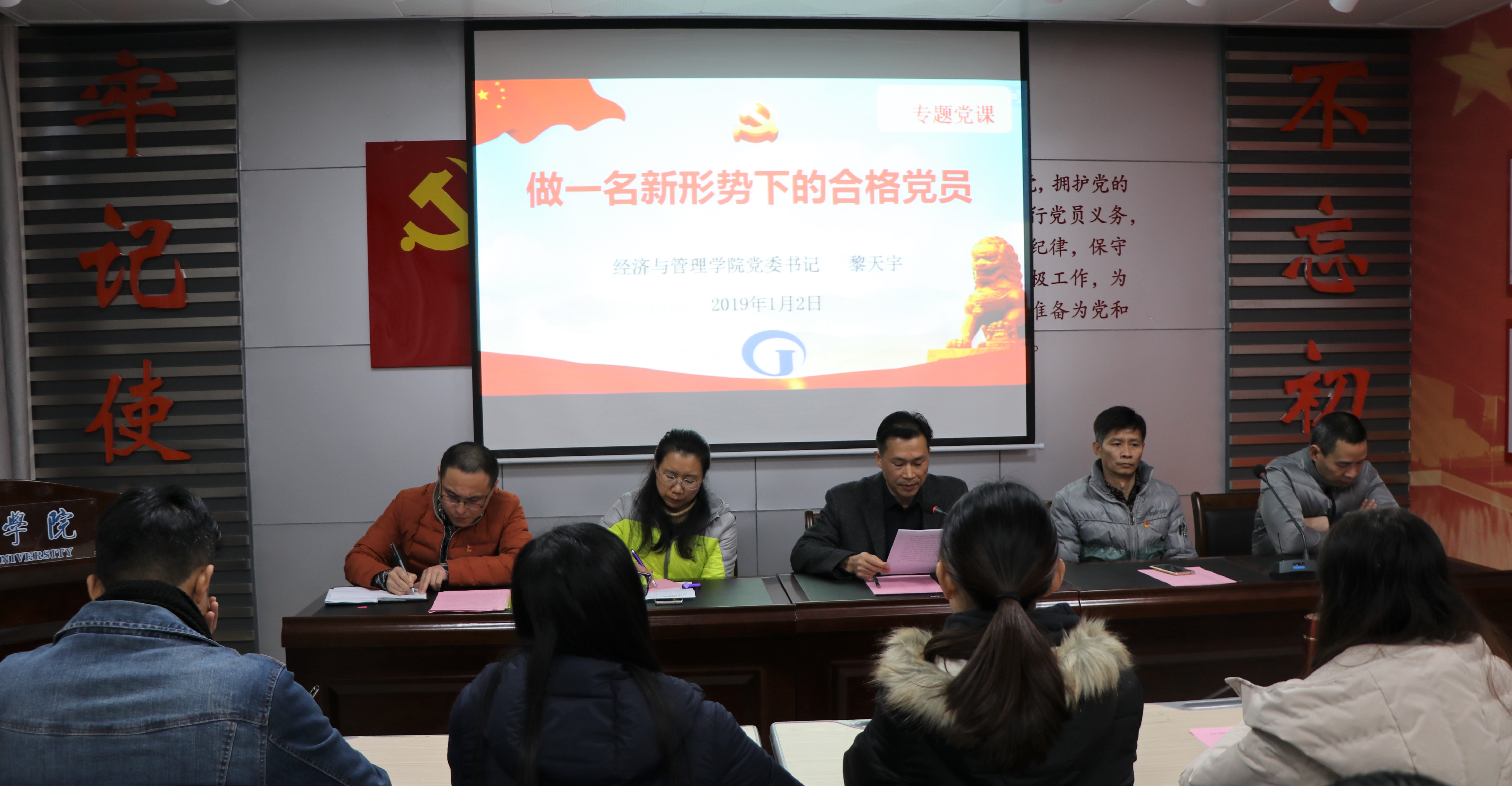 最后,党委书记黎天宇代表学院党委向对新发展的学生党员、预备期满转正的学生党员寄予厚望。同时,作了以《做一名新形势下的合格党员》为主题的专题党课。黎天宇书记从加强理论学习,提升党性修养;强化纪律意识,发挥先锋作用和做一名新形势下合格的共产党员三个方面进行了党课教育,黎天宇书记要求新老党员一定要牢记自己的第一身份,务必做到以“四讲四有”(讲政治,有信念;讲规矩,有纪律;讲道德,有品行;讲奉献)为标准的新时代的合格党员。(编辑:张鹏军)