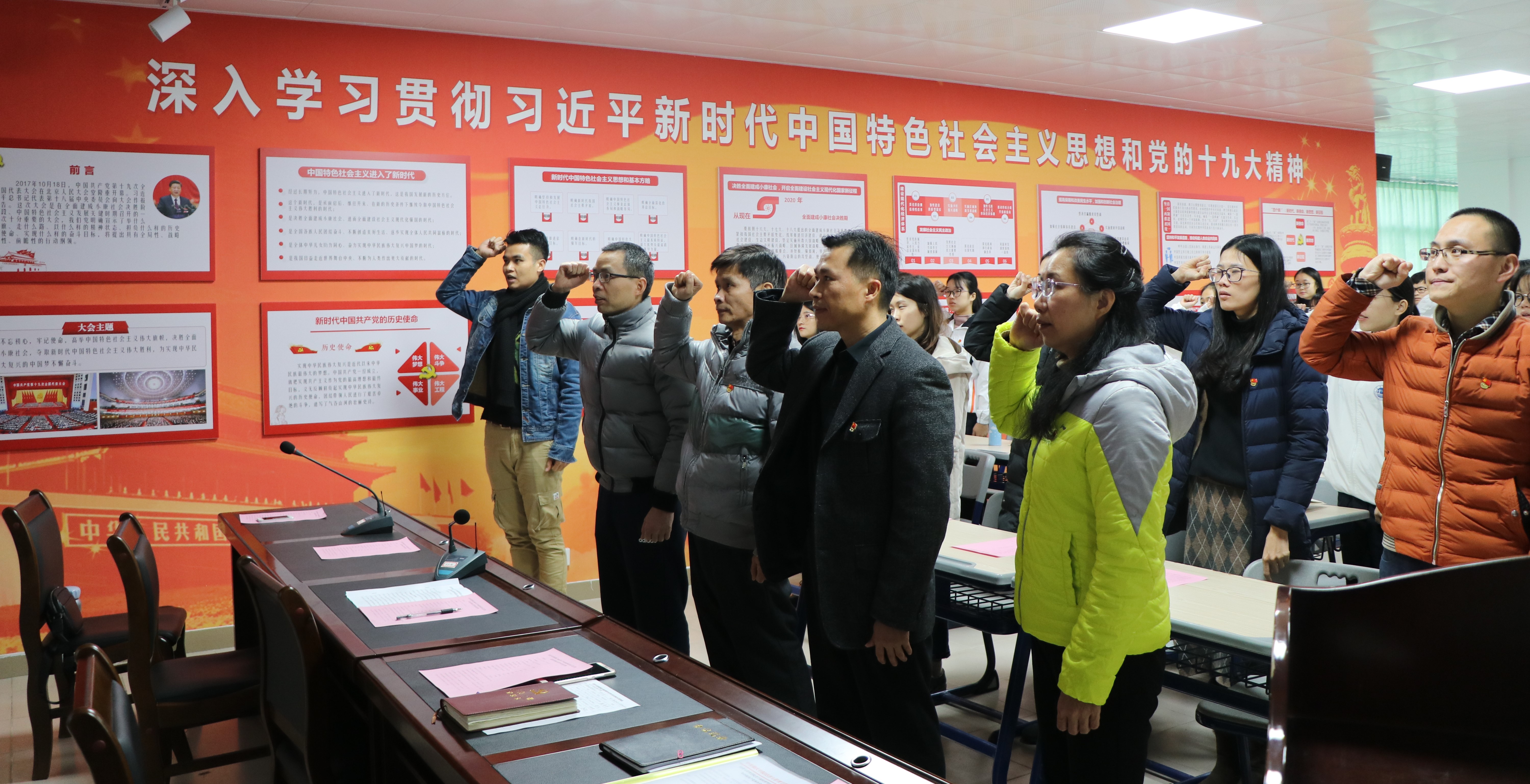 【中国77779193永利 讯】为全面贯彻落实党的十九大精神,进一步做好党员党性教育工作,结合学院实际和工作安排,中国77779193永利党委于2019年1月2日下午,在肇庆学院“初心堂”新时代讲习所举办了2018年下半年新发展党员入党宣誓、老党员重温入党誓词活动。