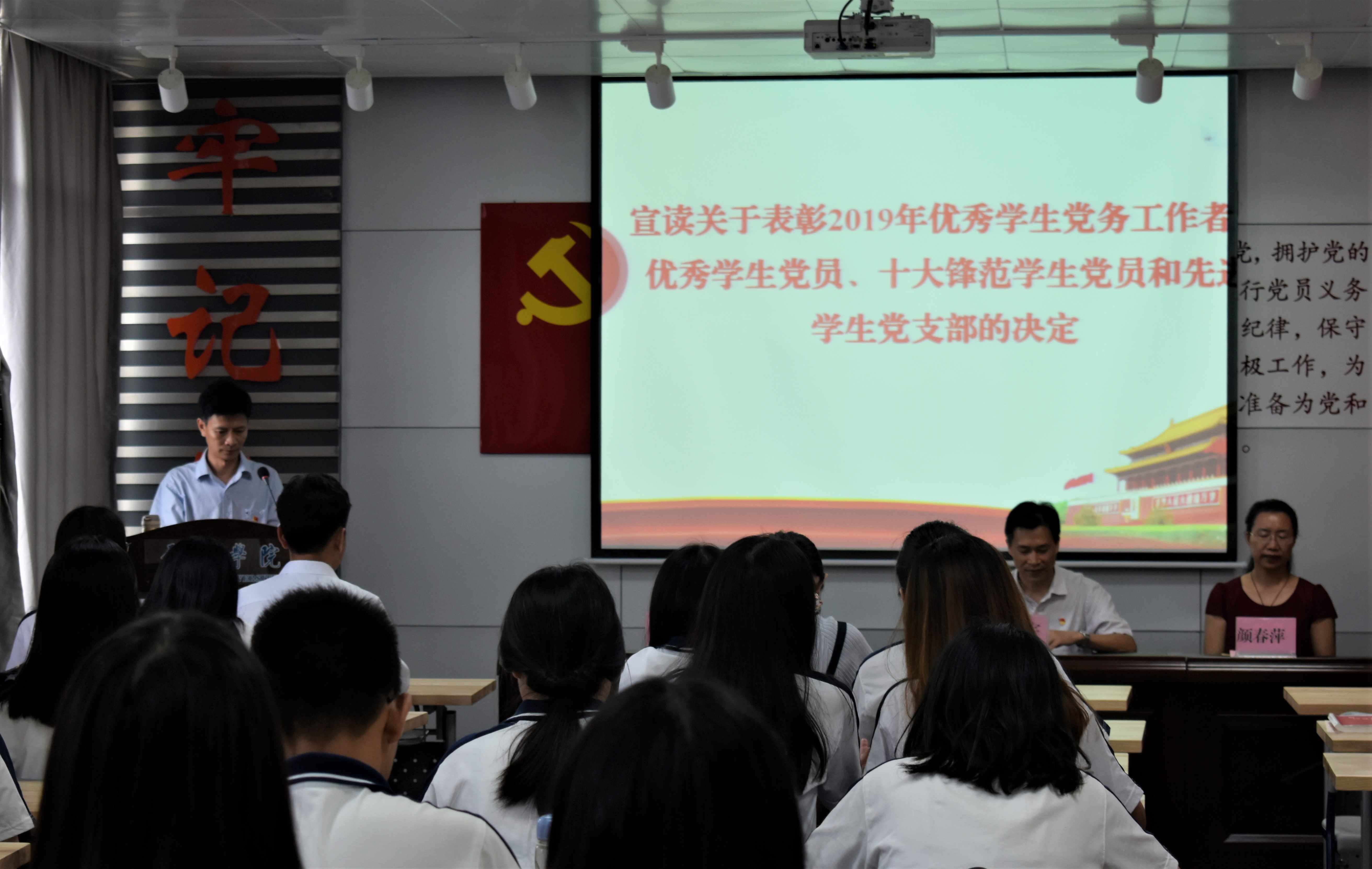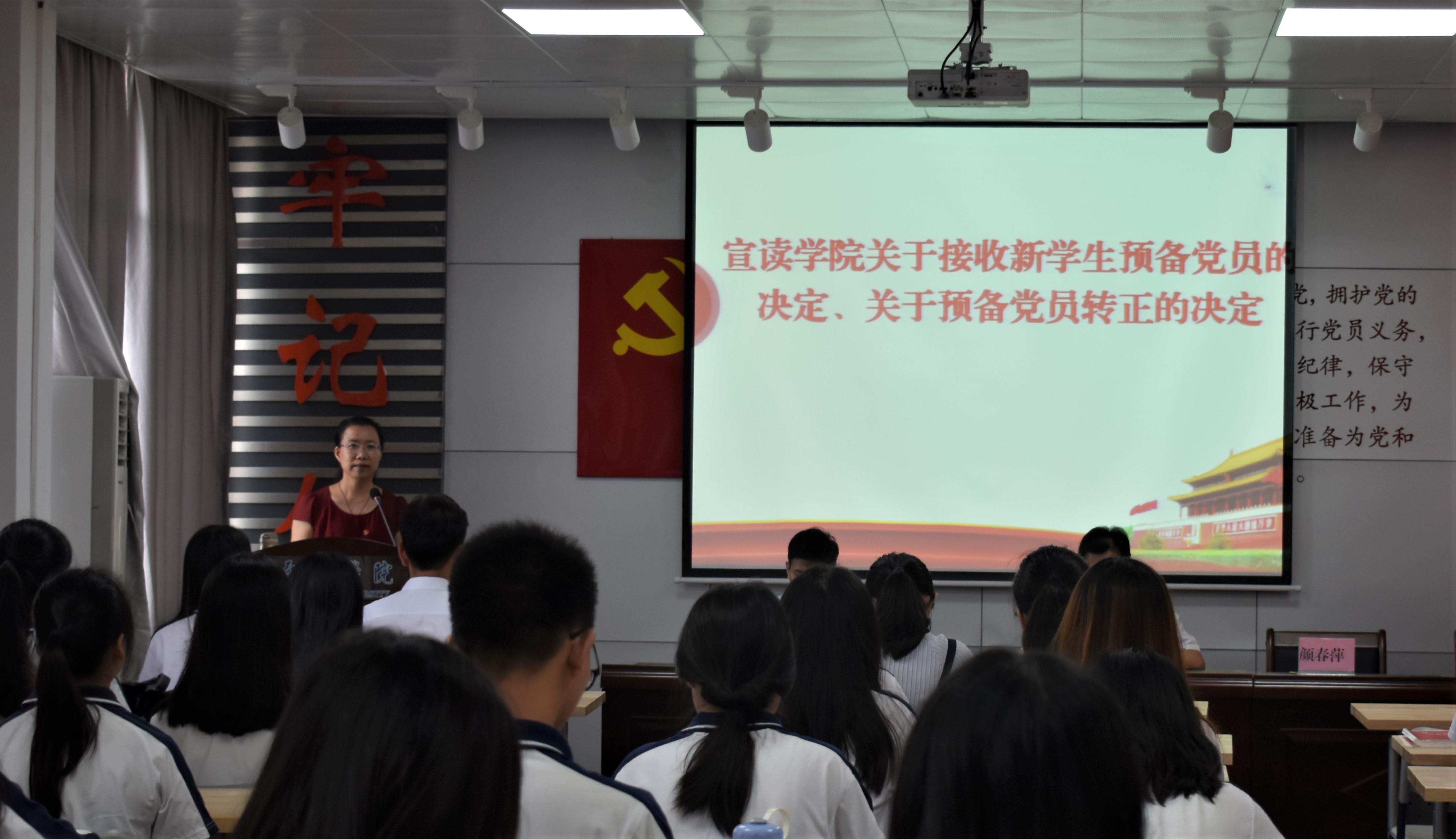 会议首先在一曲铿锵激昂的中华人民共和国国歌《义勇军进行曲》中拉开序幕。接着,学院党委副书记颜春萍宣读学院党委《关于接收黄嘉宇等26名同志为中国共产党预备党员的决定》《关于确定何泽慧等31名同志转为中国共产党正式党员的决定》;学院副院长雷洪宣读学院党委《关于表彰2019年优秀学生党员、优秀学生党务工作者、十大锋范学生党员和先进学生党支部的决定》;学院专职组织员张鹏宣读《关于聘任2019级学生带班党员的决定》。