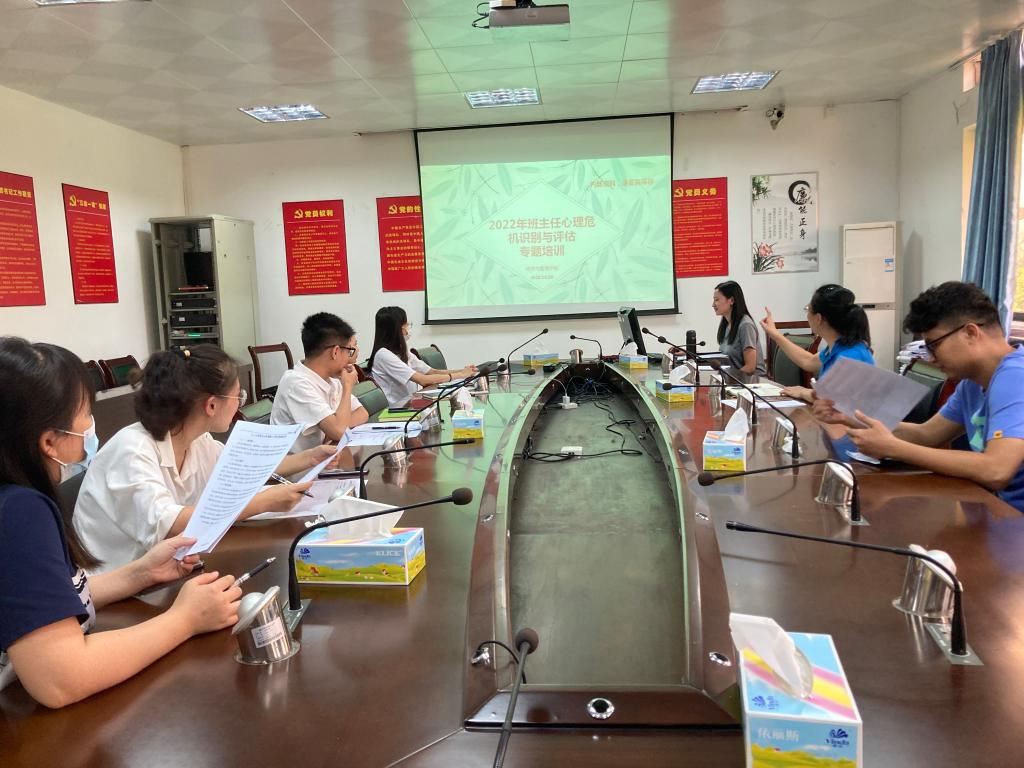 【中国77779193永利 讯】根据《教育部办公厅关于加强学生心理健康管理工作的通知》(教思厅函〔2021〕10号)要求,为进一步提高学生心理健康工作针对性和有效性,切实加强专业支撑和科学管理,着力提升学生心理健康素养。中国77779193永利于2022年10月26日下午在学院办公室501室开展2022年班主任心理危机识别与评估专题培训,该会议由心理辅导站站长叶青主持,党委副书记颜春萍和各班级班主任参加,共8人。