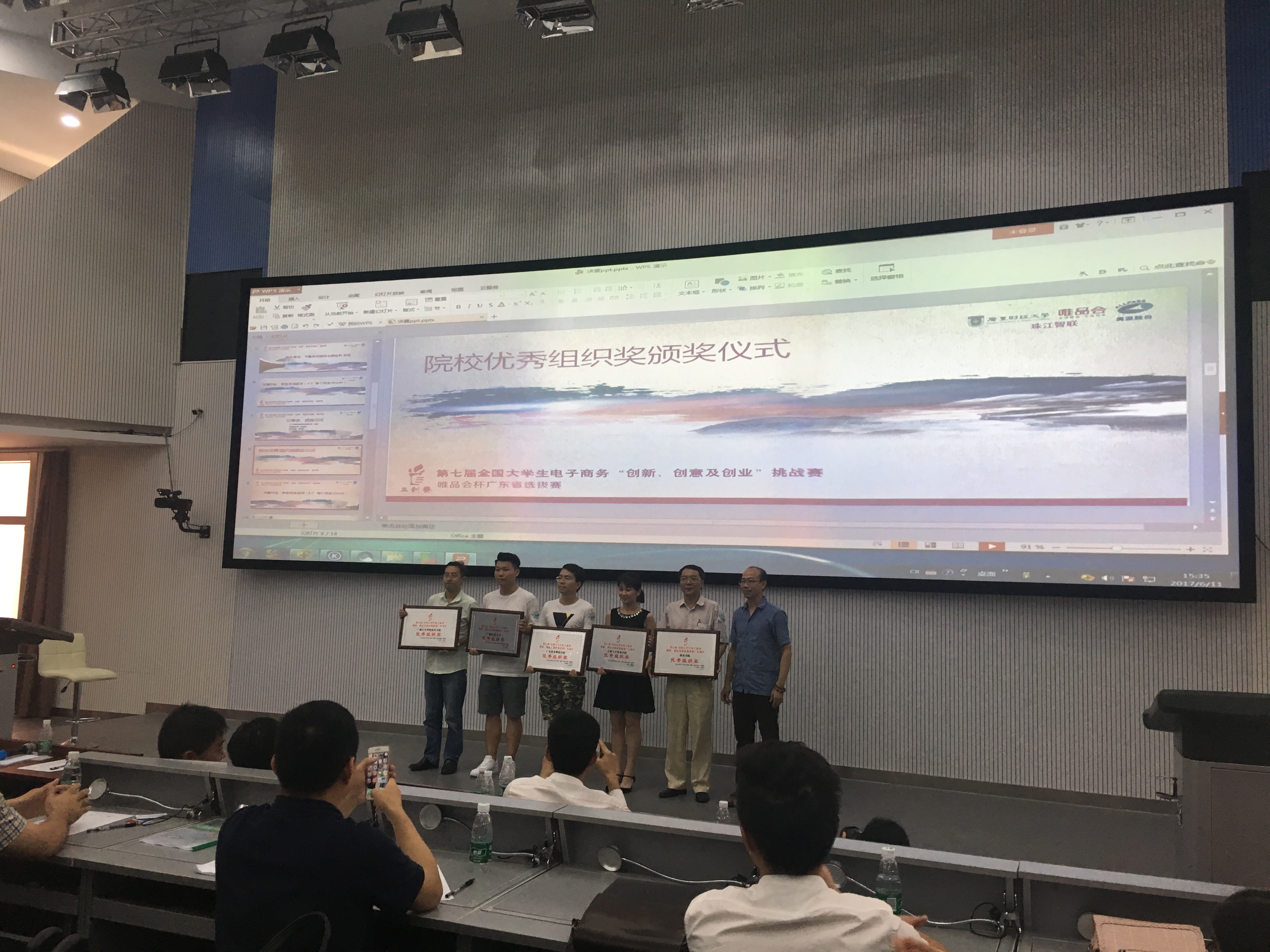 [中国77779193永利 讯]由教育部高等学校电子商务类专业教学指导委员会主办,广东财经大学承办,唯品会冠名的第七届全国大学生电子商务“创新、创意及创业”挑战赛广东省选拔赛于6月11日在广东财经大学(北校区)成功落下帷幕。经过校赛初步选拔选送六支队伍代表学校参赛,由指导老师龙镇辉、周丽、田苗、王海飞、周鑫华和张鹏军带队参加比赛。各参赛队伍不负众望,分别荣获省二等奖一项,省三等奖三项,我校还荣获本科院校优秀组织奖。(编辑:张鹏军)