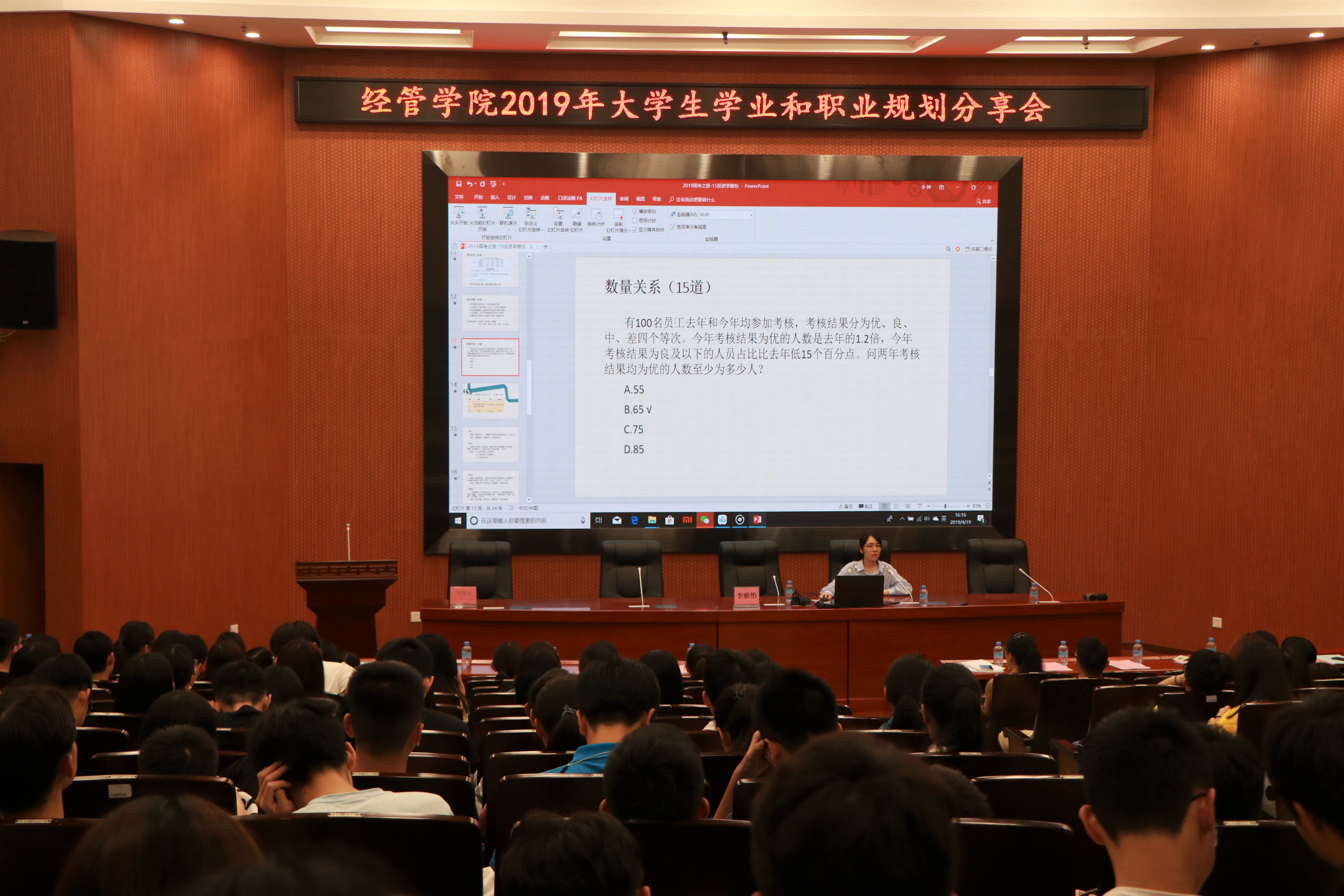 会上,江女士分享了自己的工作经历,对学生就如何在大学中做好职业规划,提升自己,为将来走上社会提出三点建议:第一,要注重学习,积累丰富的学识和技能;第二,要肯下功夫钻研,除了学好专业知识外,还要拓宽知识面,掌握通用技能;第三,要认识自我,选对方向,朝既定方向坚定地走下去。李雅怡同学给我们分享了她2019年的国考之旅,并为同学们介绍了考公务员的相关知识,她通过自己的亲身经历告诉同学们:“路是靠自己走出来的,直面你的迷茫,找到你的弱点,克服它。”最后,康健副处长分析当下的就业形势,提出学生要结合时代特点,根据自己的职业倾向,确定最佳的职业奋斗目标,并付之行动。三位嘉宾的分享从不同角度,不同层面为学生进行了答疑解惑,给大学生如何做好职业规划提供一个正确的指导。
