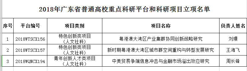 近期,省教育厅公布了2018年度广东省普通高校重点科研平台和科研项目立项名单,我院3个项目获得立项,其中特色创新类项目2项,青年创新人才类项目1项。