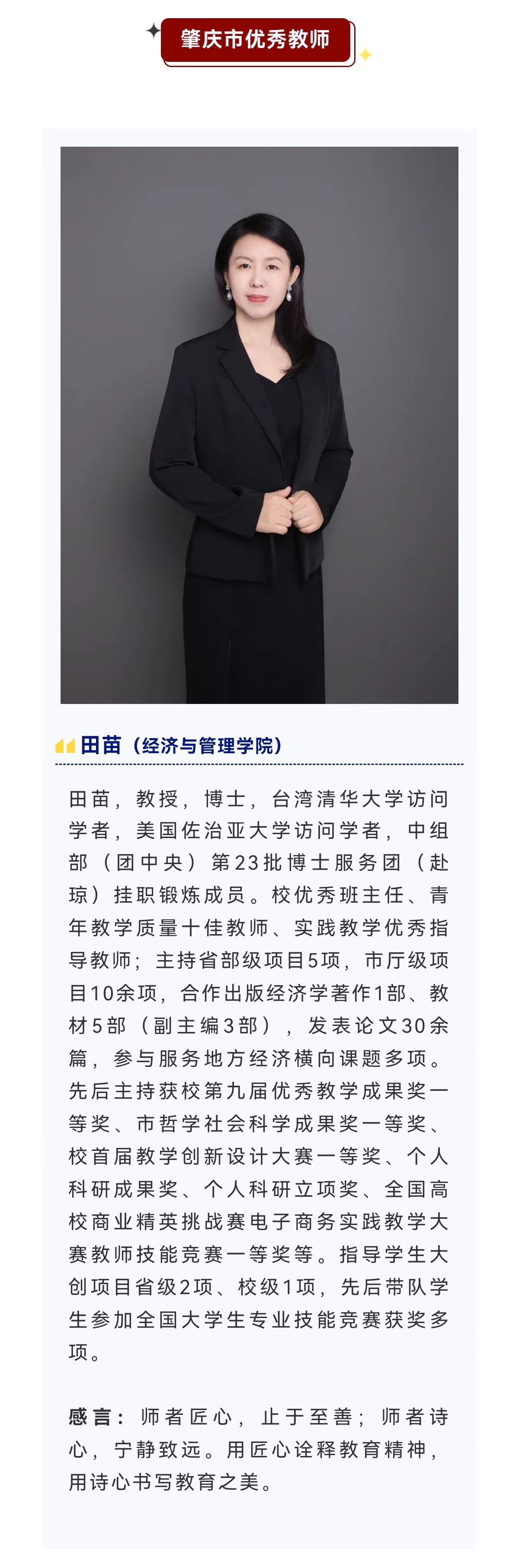 热烈祝贺田苗教授获评2023年度肇庆市优秀教师