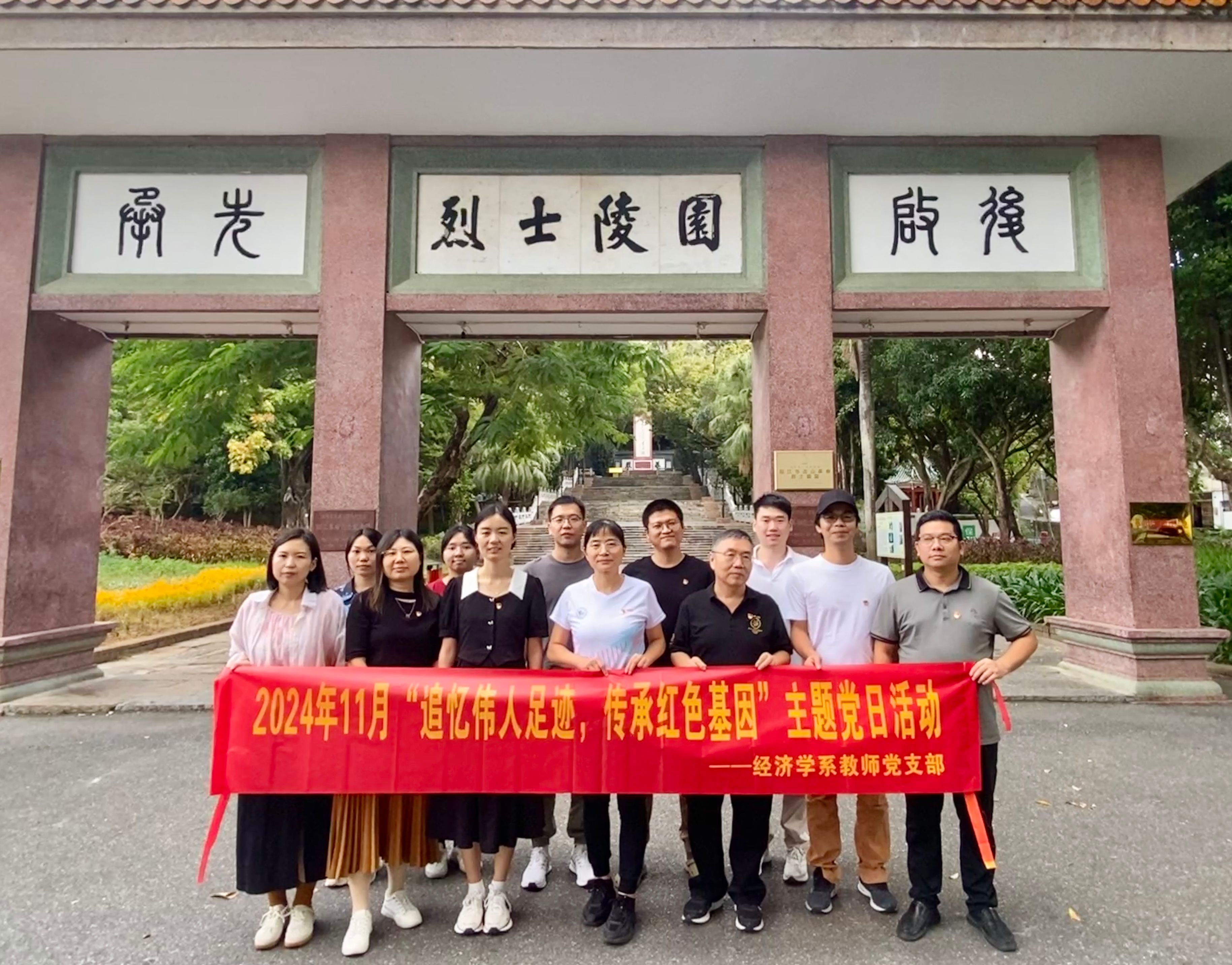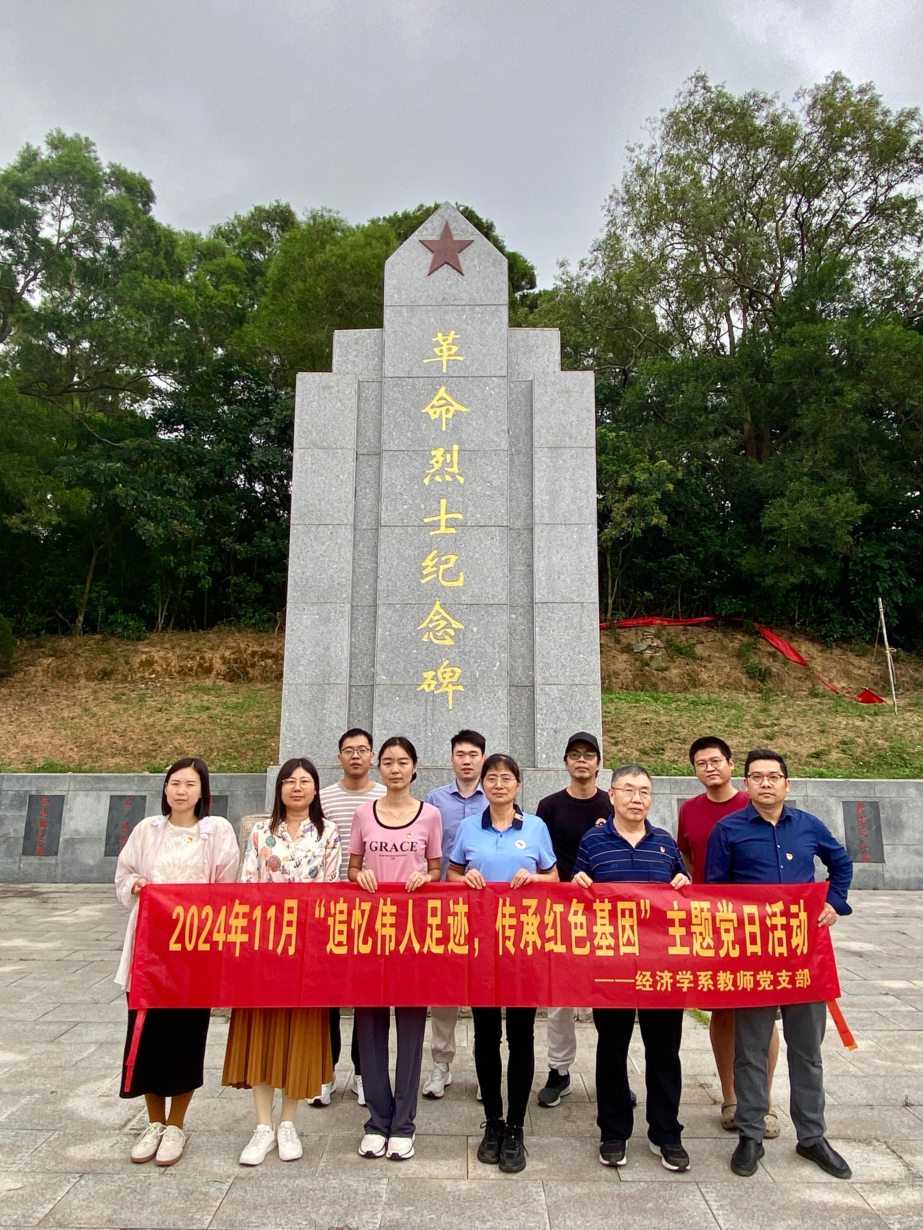 为弘扬爱国主义精神,缅怀革命先辈的丰功伟绩,从百年党史中汲取信仰的力量,从英雄榜样中汲取精神力量,经济学系教师党支部于2024年11月16日至2024年11月17日组织师生党员前往阳江烈士陵园和闸坡革命烈士纪念碑开展以“追忆伟人足迹,传承红色基因”为主题的党日活动。