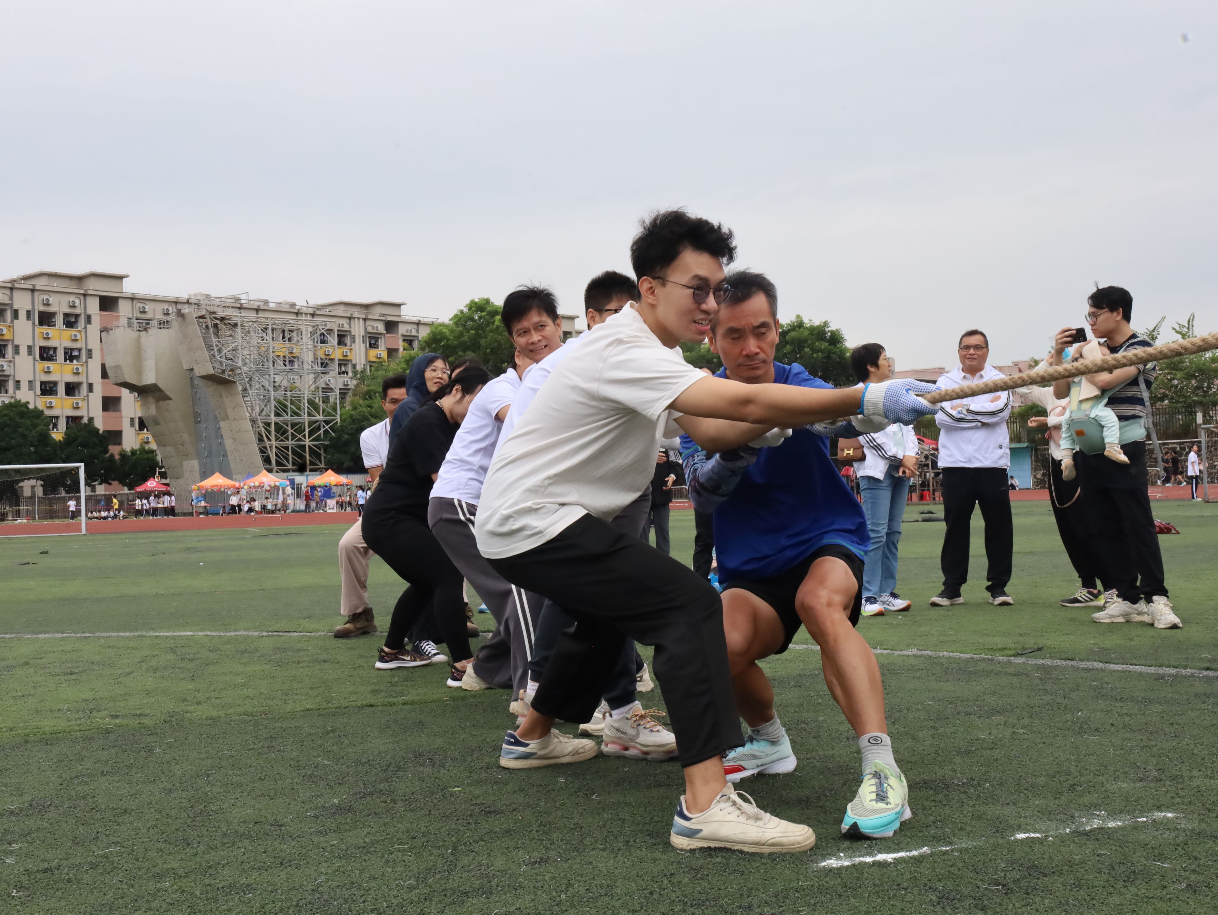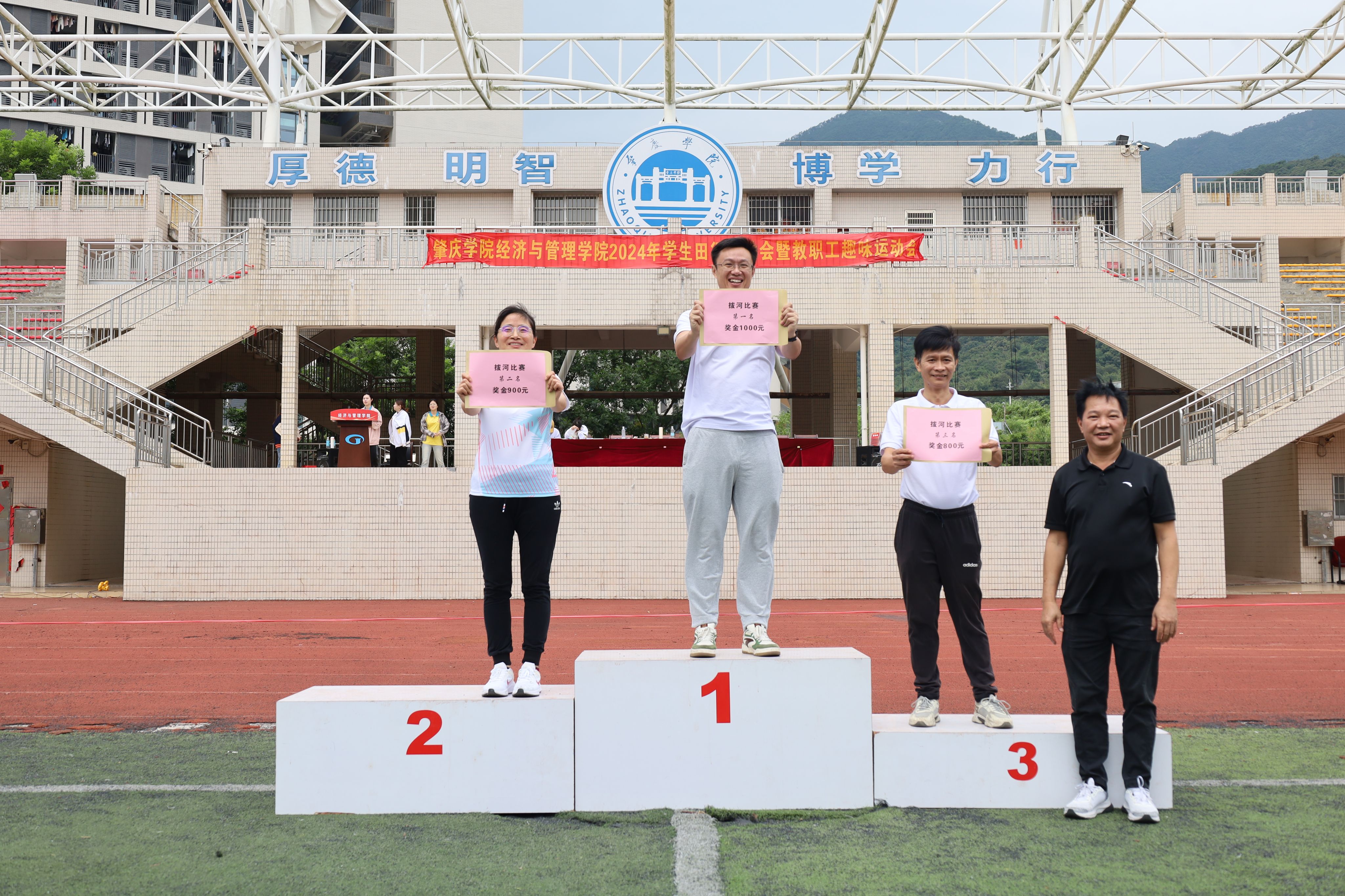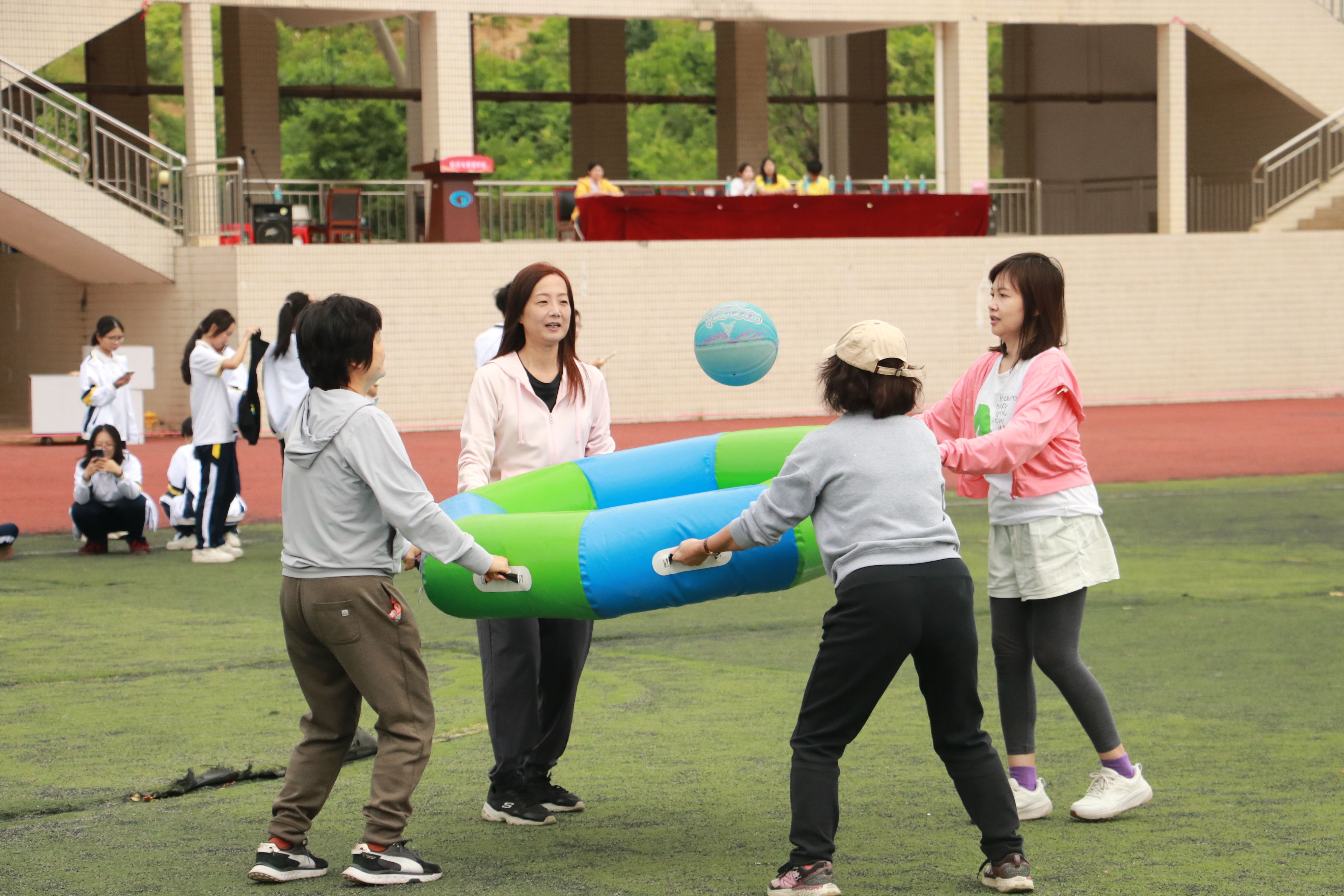 比赛正式拉开序幕。党委书记梁标带领队伍获得毛毛虫项目第一名、党委副书记巫燕娜带领队伍获得众星捧月第一名、行政教辅团队董濠鋆老师在路障射门个人项目中拔得头筹,并与曾俊皓老师结队获得移花接木第一名。