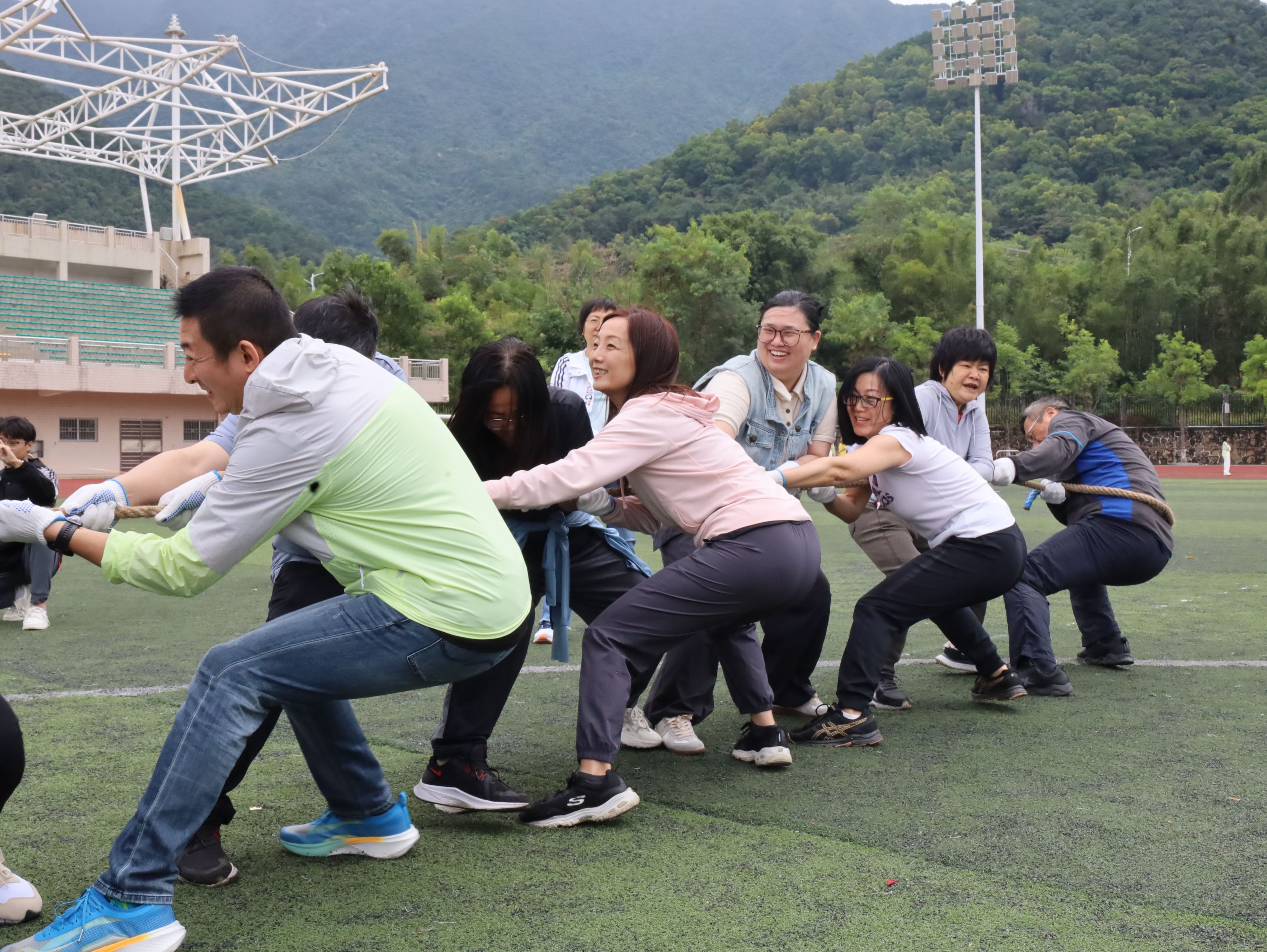 今年是学院教职工健身运动会的重启之年,大家积极踊跃报名,共有50余名老师热情参与。伴随着充满节奏感的音乐,老师们在路障射门、毛毛虫、众星捧月、移花接木、拔河等趣味项目中,处处可见步调一致、协作良好的队伍,既展现出色的体育技能、昂扬的精神风貌,也彰显团结协作的精神,在强健体魄的同时增进每部各专业教师之间的友谊。
