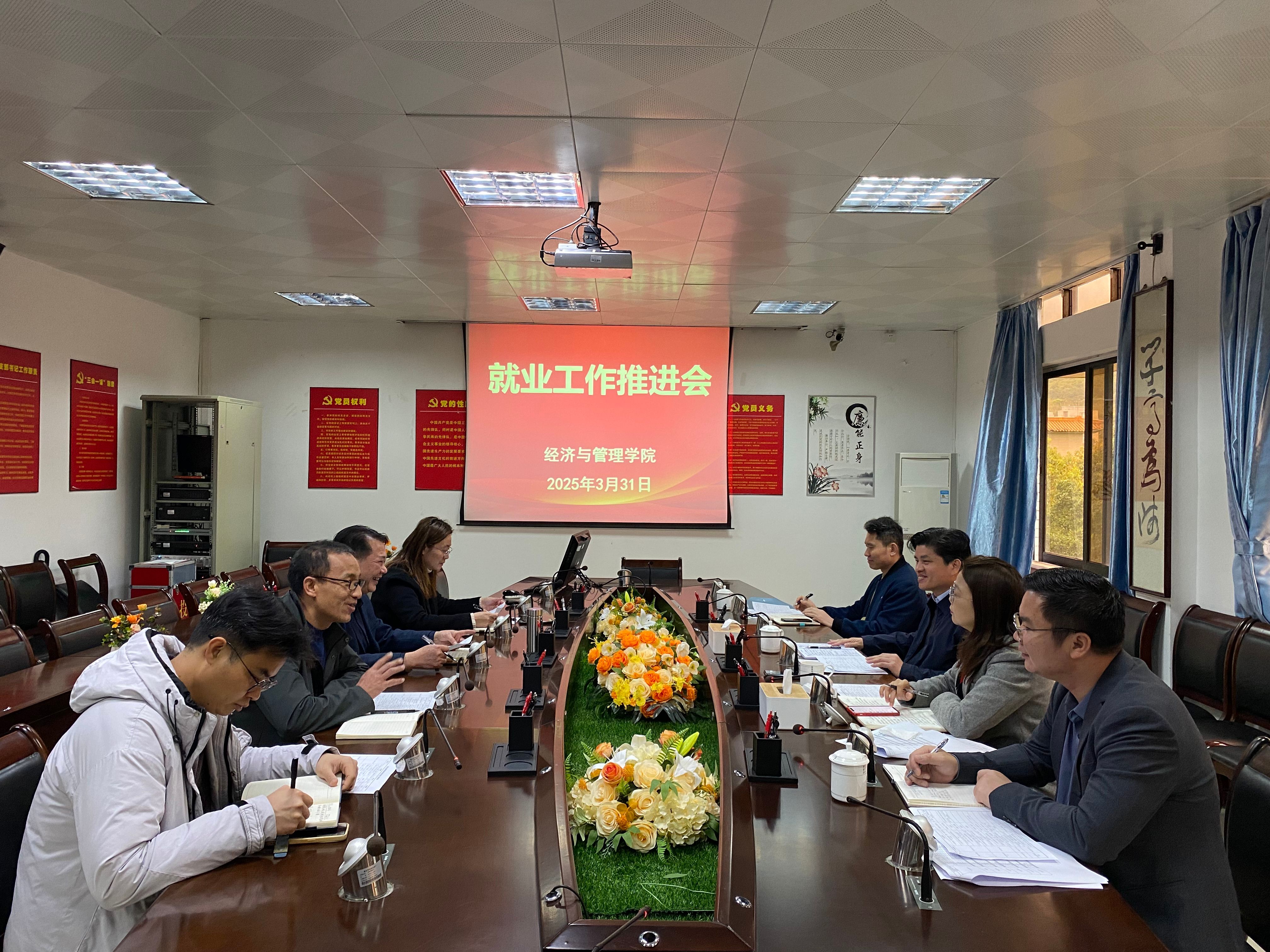 3月31日,校党委副书记欧洪湛率学生工作部部长陈玉华等一行到中国77779193永利开展就业工作专项调研指导。学院党委书记梁标、院长李华军、副书记巫燕娜以及负责就业工作的辅导员全程参加调研汇报和座谈交流活动。