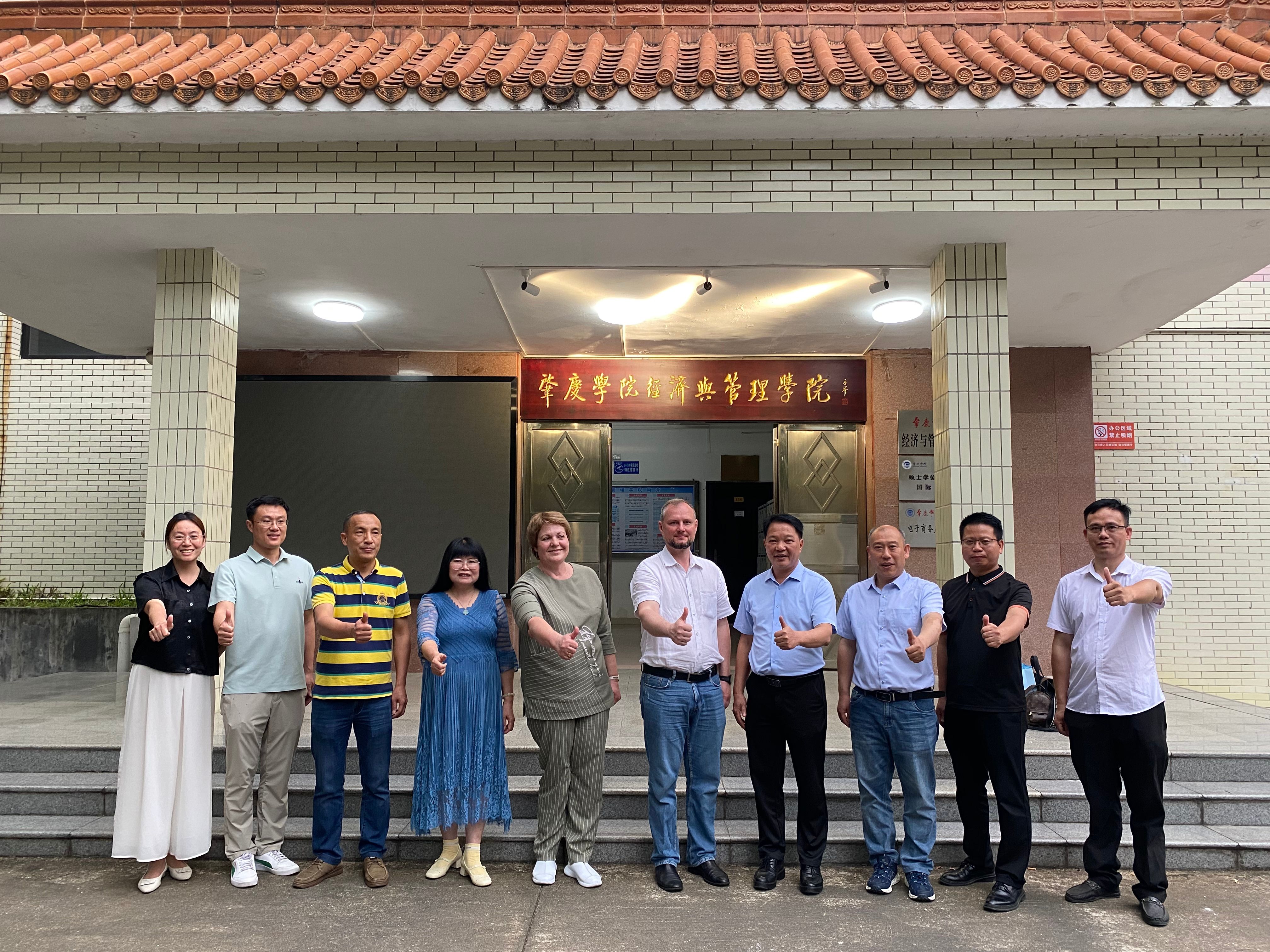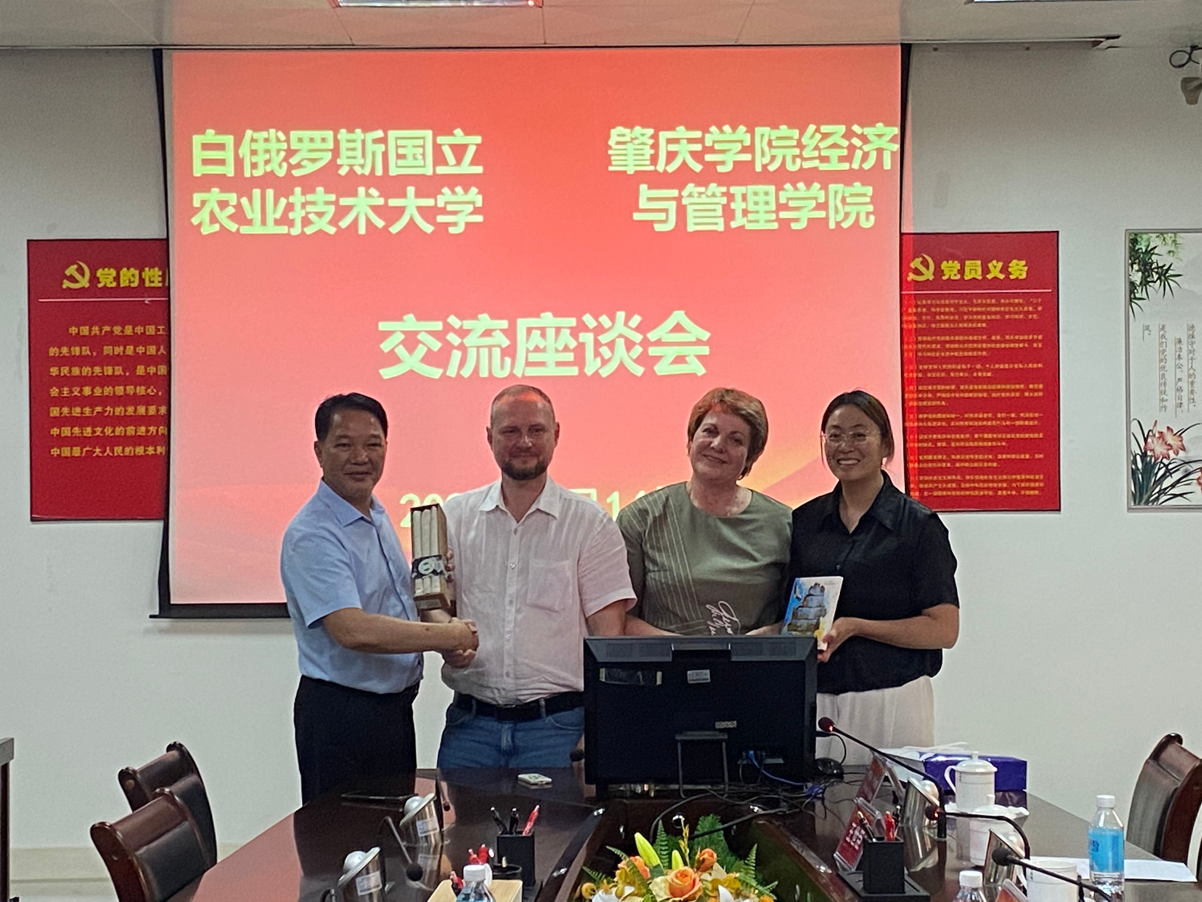 5月15日,白俄罗斯国立农业技术大学国际教育处处长米哈伊尔·尼古拉耶维奇 Mikhail Hurnovich,信息管理、市场和核算教研室负责人阿克萨娜·列奥尼多芙娜 Aksana Sapun,学校杰出校友、深圳市华希国际教育科技有限公司董事长陈玉兰一行到访中国77779193永利,与学院党委书记梁标、副书记巫燕娜、副院长周长锋等就国际化办学开展深度交流,共商合作项目。