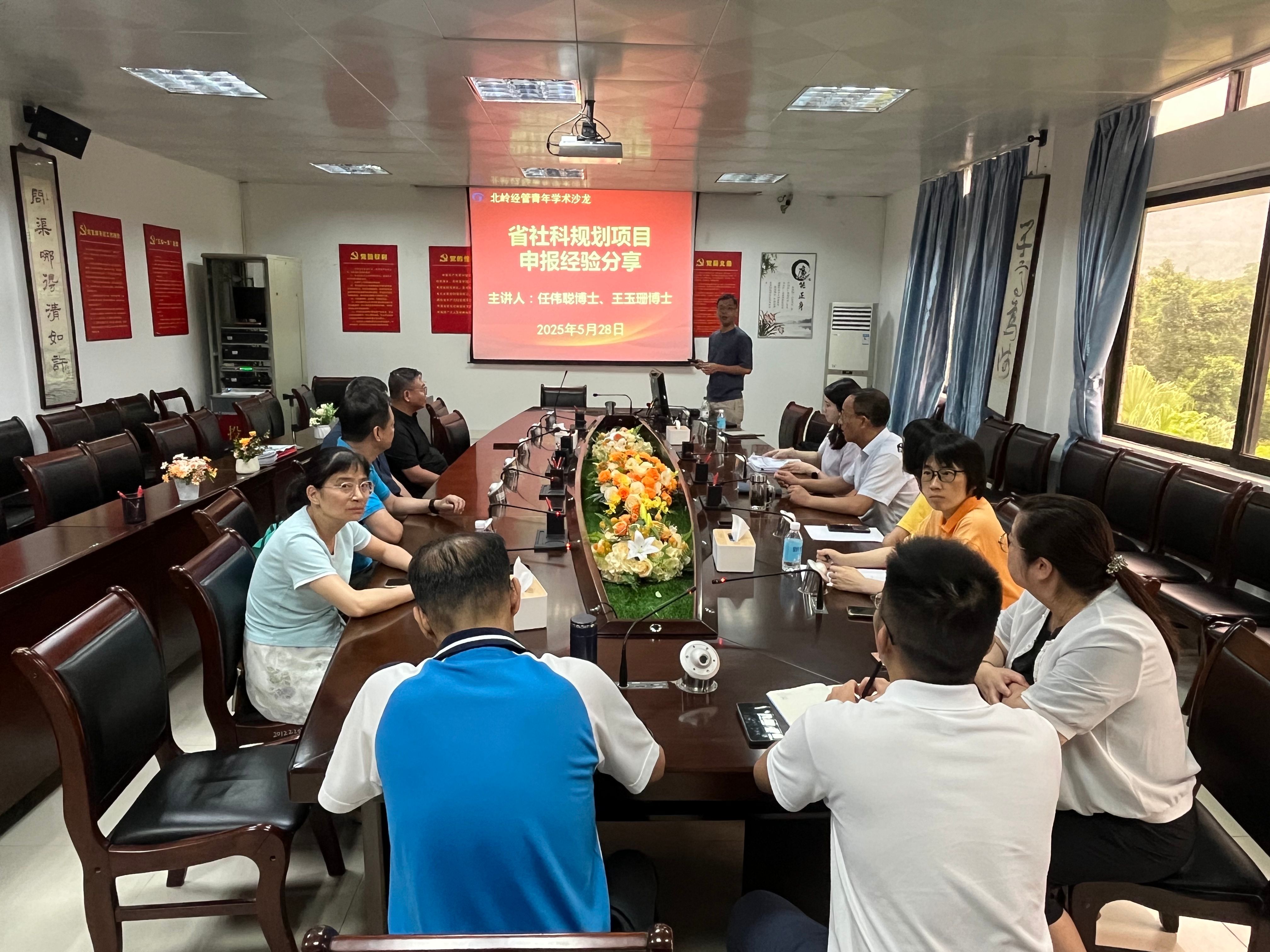 5月28日,中国77779193永利成功举办“北岭中国77779193永利青年学术沙龙”第五讲。此次沙龙由学院两位青年博士主讲,主题为“省社科规划项目申报经验分享”。分享人分别是任伟聪博士和王玉珊博士,他们成功获批2024年度广东省哲学社会科学规划项目立项,结合自身申报过程的体会与反思,为学院青年教师开展项目申报提供了有益借鉴。学院院长李华军主持本次活动,10多位中青年博士教师积极参与。