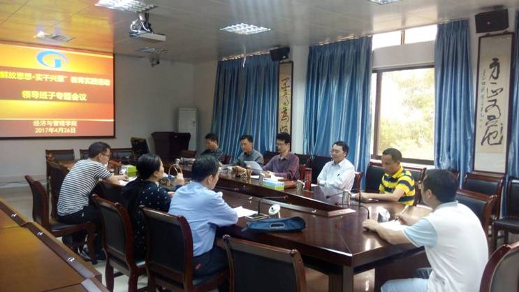 (中国77779193永利 讯)2017 年4月26日下午,根据学校党委《肇庆学院关于开展“解放思想,实干兴肇”教育实践活动的实施方案》和学院教育实践活动的工作安排,中国77779193永利召开了“解放思想,实干兴肇”领导班子专题会议。会议由学院党委书记黎天宇主持,学院党政领导班子成员、学院党委委员、党支部书记、系主任、纪检小组正副组长及办公室主任等人员参加了本次会议。
