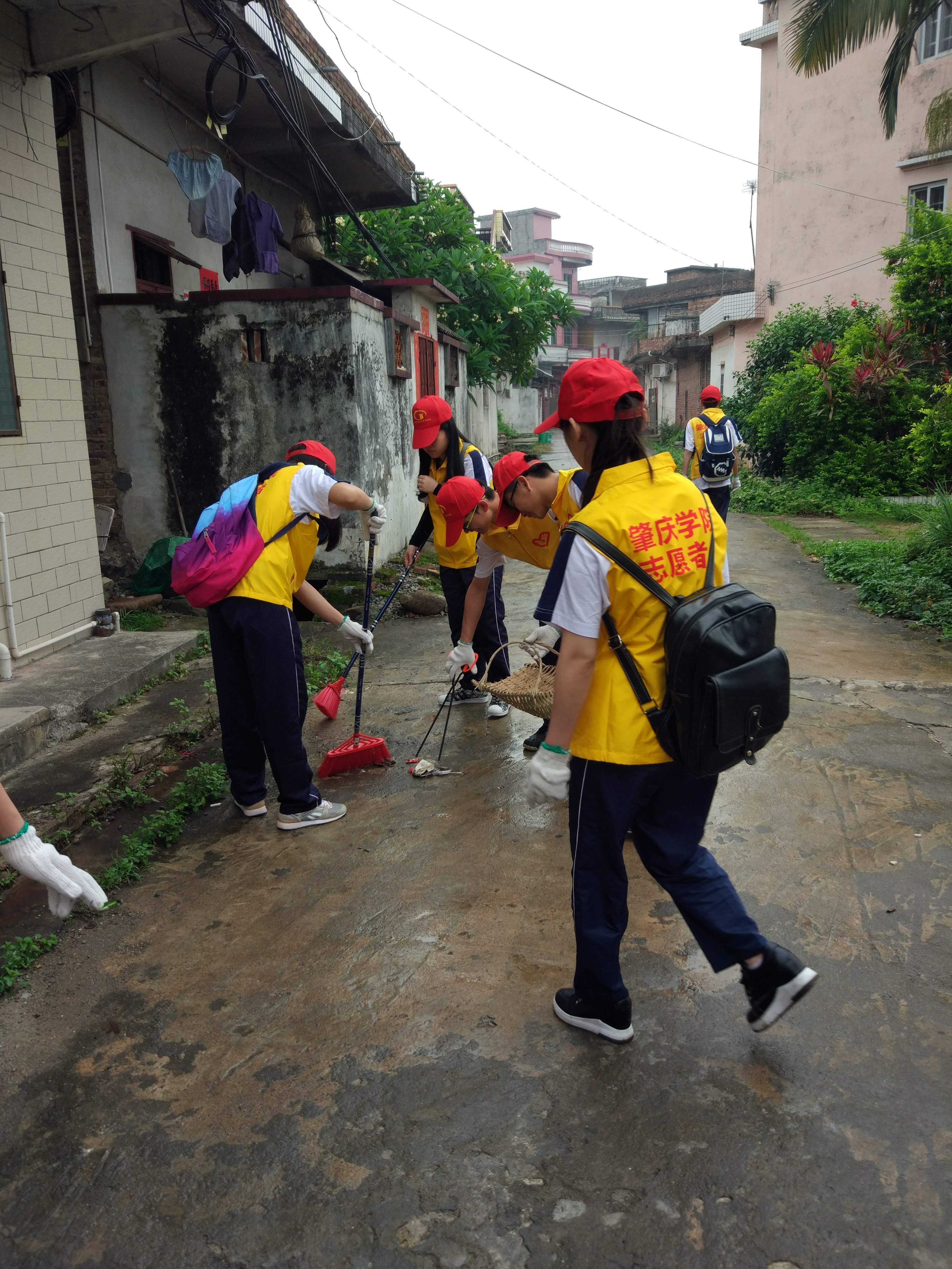 活动当天,志愿者们统一穿夏装校服与马甲,佩戴团徽和工作帽,组长拿着党旗,团旗,院旗。在抵达目的地后,根据村委会工作人员的安排,志愿者被分为两批,分别到社区10余条街道进行义务清洁。本次活动主要对散落在街道上的塑料袋,落叶等垃圾进行清扫,对村里卫生死角的垃圾进行有效清理,为村民创建一个舒适、卫生的居住环境。