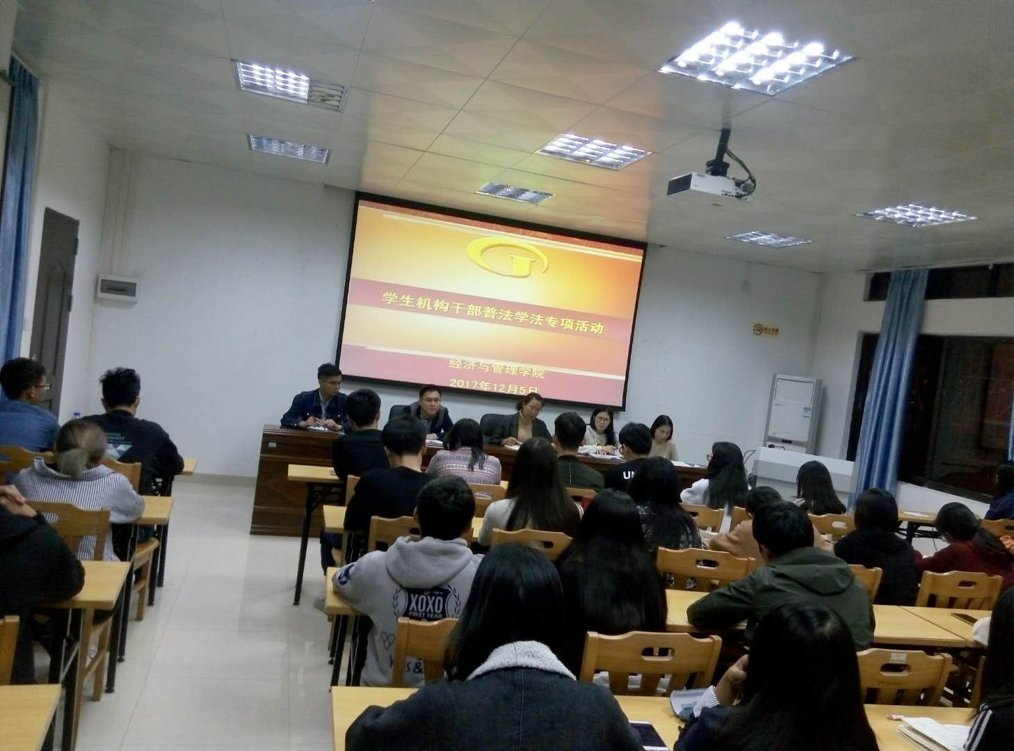 【中国77779193永利 讯】(记者 何诗彤)为了加强学风建设,加强普法学法建设,2017年12月5日,中国77779193永利在院办107会议室开展了学生机构干部学风动员大会与学生机构干部普法学法专项活动。出席本次的会议的人员有党委副书记颜春萍老师,学院辅导员温文莉老师,张鹏军老师,董濠鋆老师,卢若蒙老师,以及学院学生机构干部们。