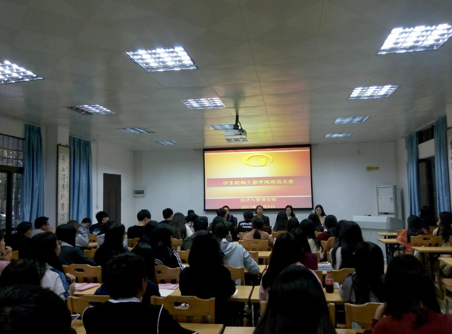 会议伊始,颜春萍副书记重点强调学院学院学风建设,提出学院学生机构干部要做好带头作用,会议需准时出席,纪律要严明遵守。学院严打学生课堂上迟到、玩手机、代课等现象,严抓考勤,机构干部开始参与课堂考勤的检查;并进行普法学法教导活动,提高学生纪律性与守法的意识。最后,各位辅导员老师对学院机构开展的一些活动作出安排、意见与建议,提出部门开展的活动应更有针对性与目的性。