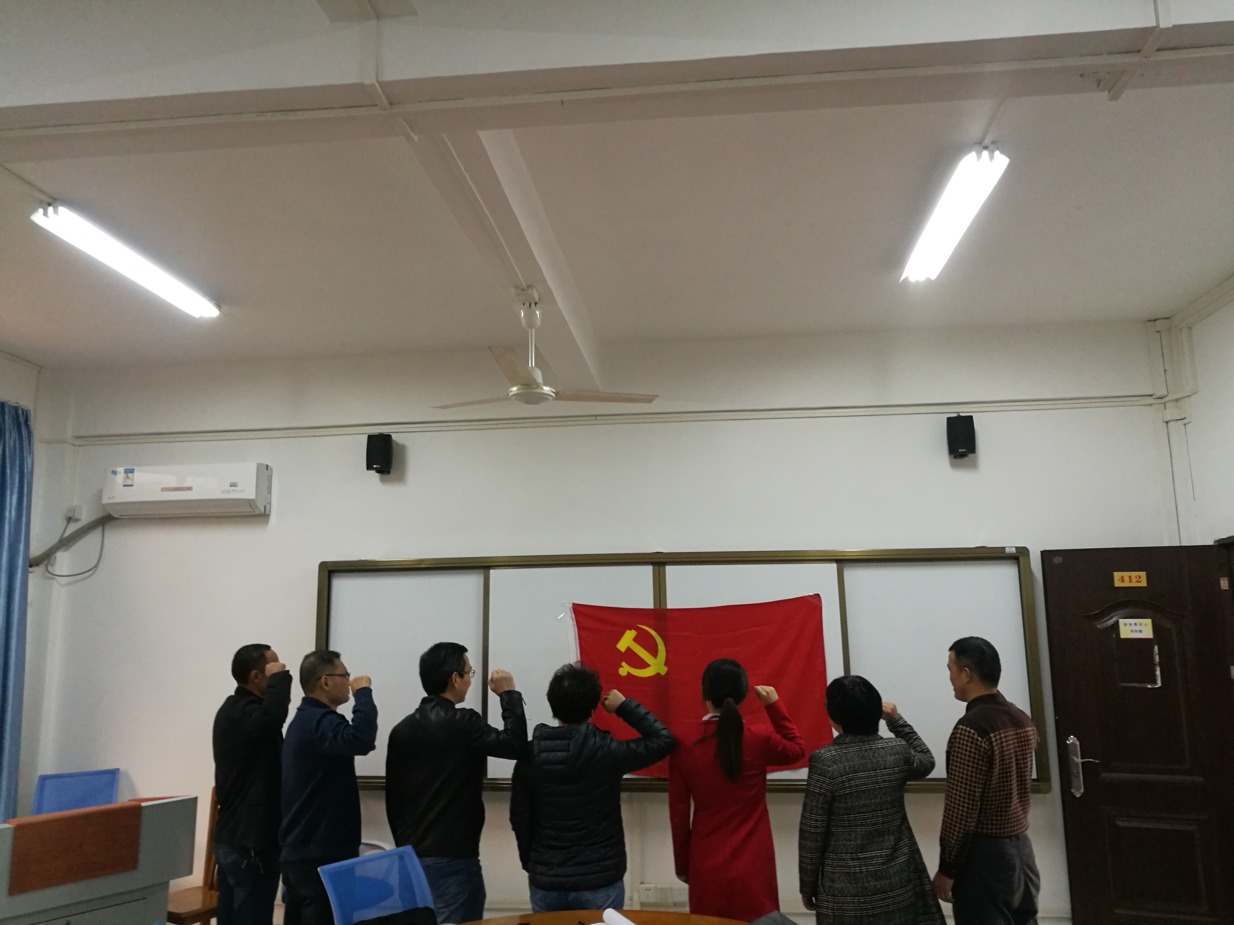 活动中,支部党员首先面向党旗,重温入党誓词,通过重温入党誓词,希望党员不忘初心,牢记使命,为实现中华民族伟大复兴做出应有的贡献。重温誓词后,支部书记与全体党员对党的十九大党章修正案进行了学习,让党员深入了解党的十九大对党章进行修改的必要性和深刻意义。最后,在支部书记的带头下,全体党员轮流诵读新党章,并在诵读结束后组织大家进行了专题讨论。在讨论时,大家畅所欲言,或谈学习心得体会,或结合自己工作实际,谈教工党员在新时代如何发挥先锋模范作用,带头落实立德树人根本任务,积极推动学院转型发展、创新强校、申硕工程、评估整改、学科专业建设、师资队伍建设等工作,为学院各项事业的发展作出就有的贡献。