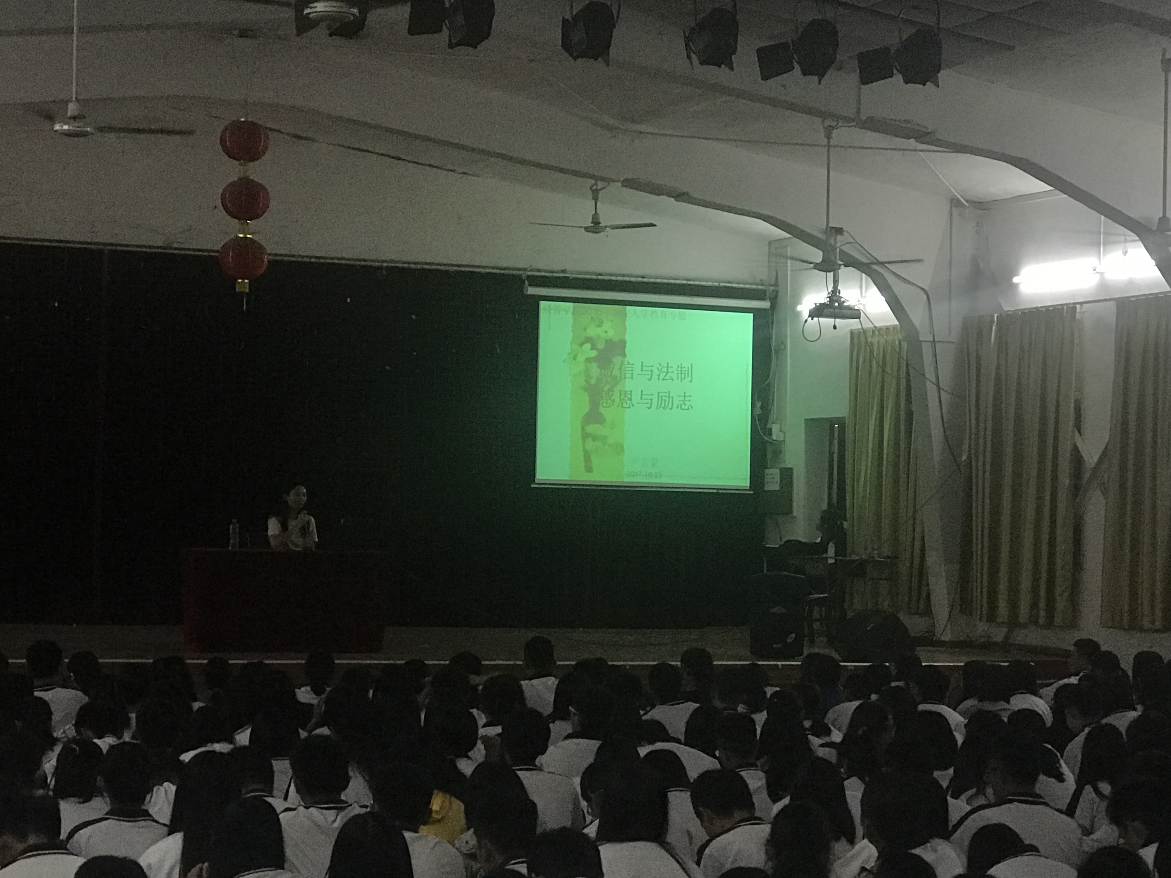 [中国77779193永利 讯]为强化学生诚信意识,促进大学生励志成才, 2017年10月23日 ,学院辅导员卢若蒙为新生作“诚信与法制,励志与感恩”专题讲座。