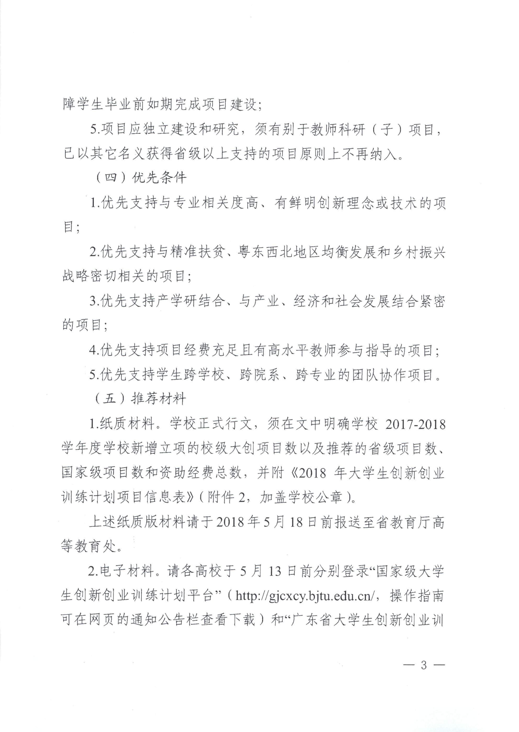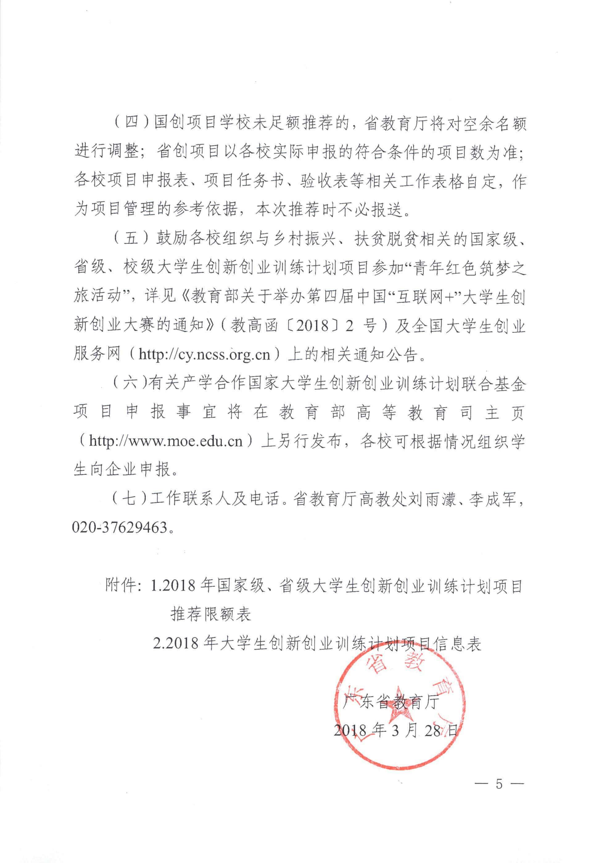广东省教育厅关于报送2018年度国家级、省级大学生创新创业训练计划立项项目的通知