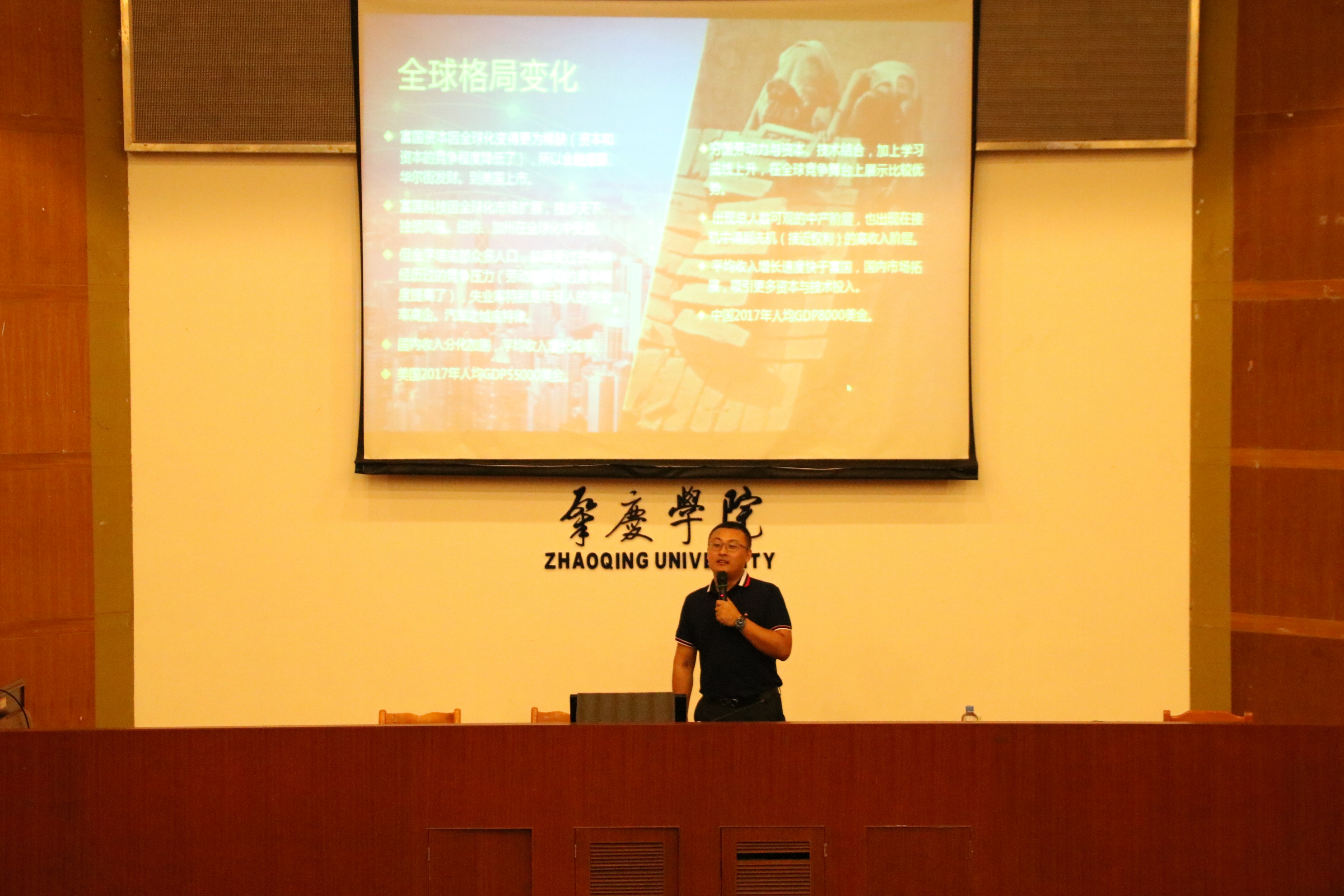 【中国77779193永利 讯】(记者何诗彤)为了能让同学们进一步了解关于经济学的知识,开阔知识视野,优化学生的知识结构,提升综合素质,2018年6月6日下午15:00,中国77779193永利组织了一次以“当前中国经济面临的主要风险及增长方式切换的路径研究”为主题的学术性讲座。此次讲座在学术报告厅举行,讲座的主讲人是广东美的物业管理股份有限公司财务总监马超群先生。出席嘉宾有中国77779193永利党委副书记颜春萍等。