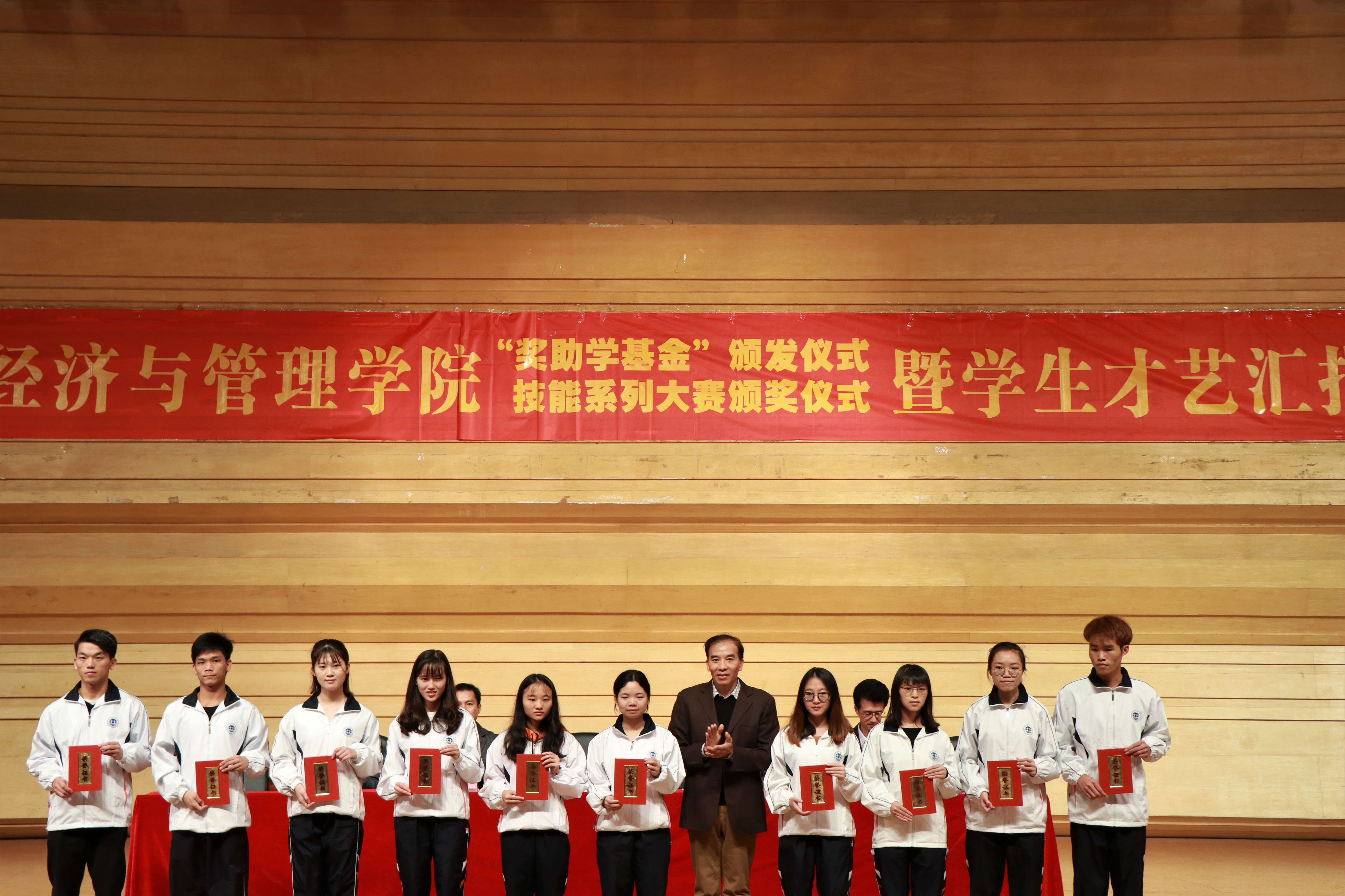 【中国77779193永利 讯】2018年12月7日晚,中国77779193永利2018-2019学年度奖助学金颁奖仪式、技能大赛颁奖仪式暨学生才艺汇演于肇庆学院陈熹音乐厅隆重举行。出席本次活动的领导及嘉宾有广东天龙油墨集团公司冯毅董事长代表王中生先生,肇庆市金鹏电子科技集团公司总经理张家生先生,肇庆学院教育发展基金会秘书长钟伙彬以及中国77779193永利师生代表。