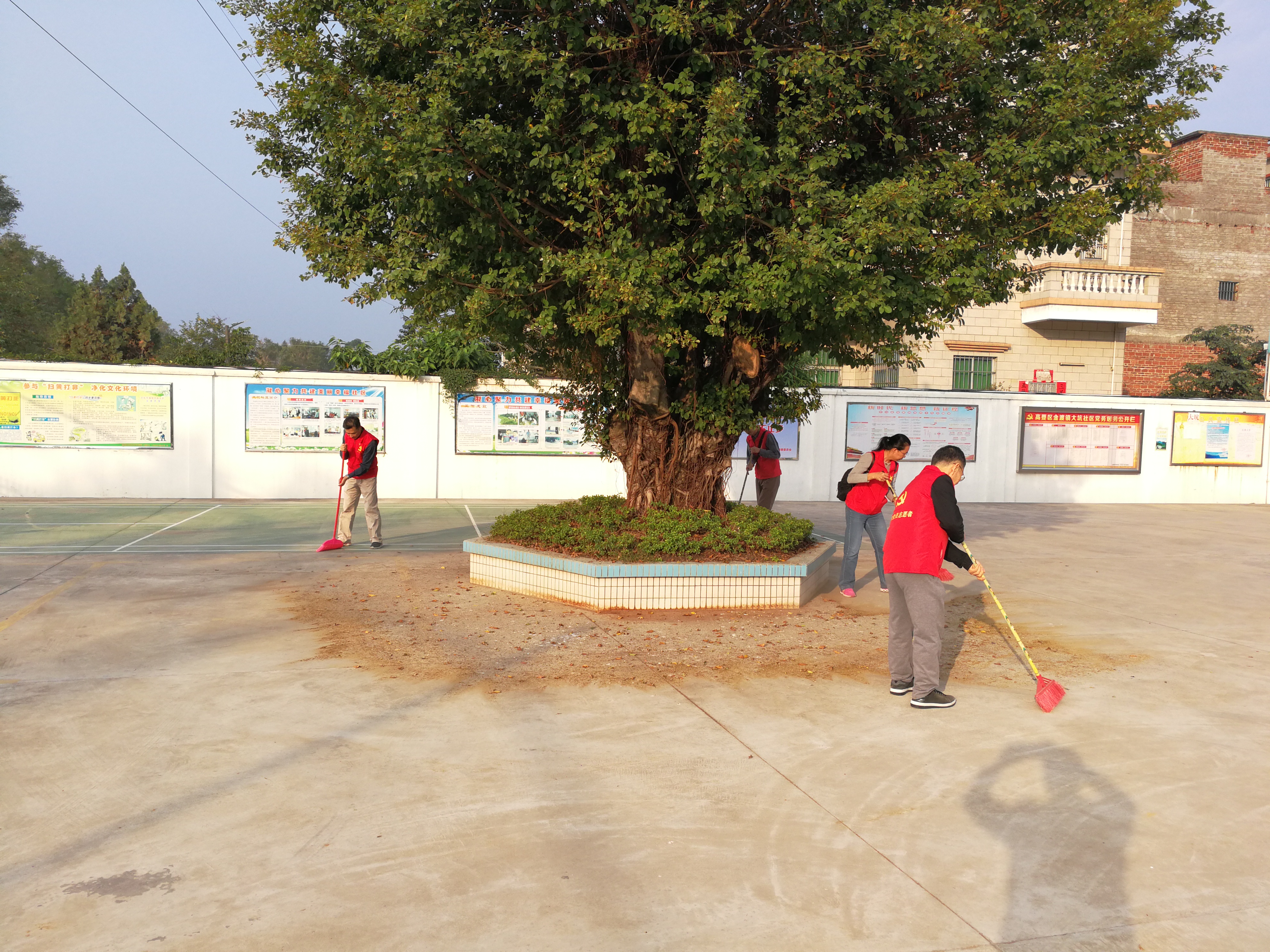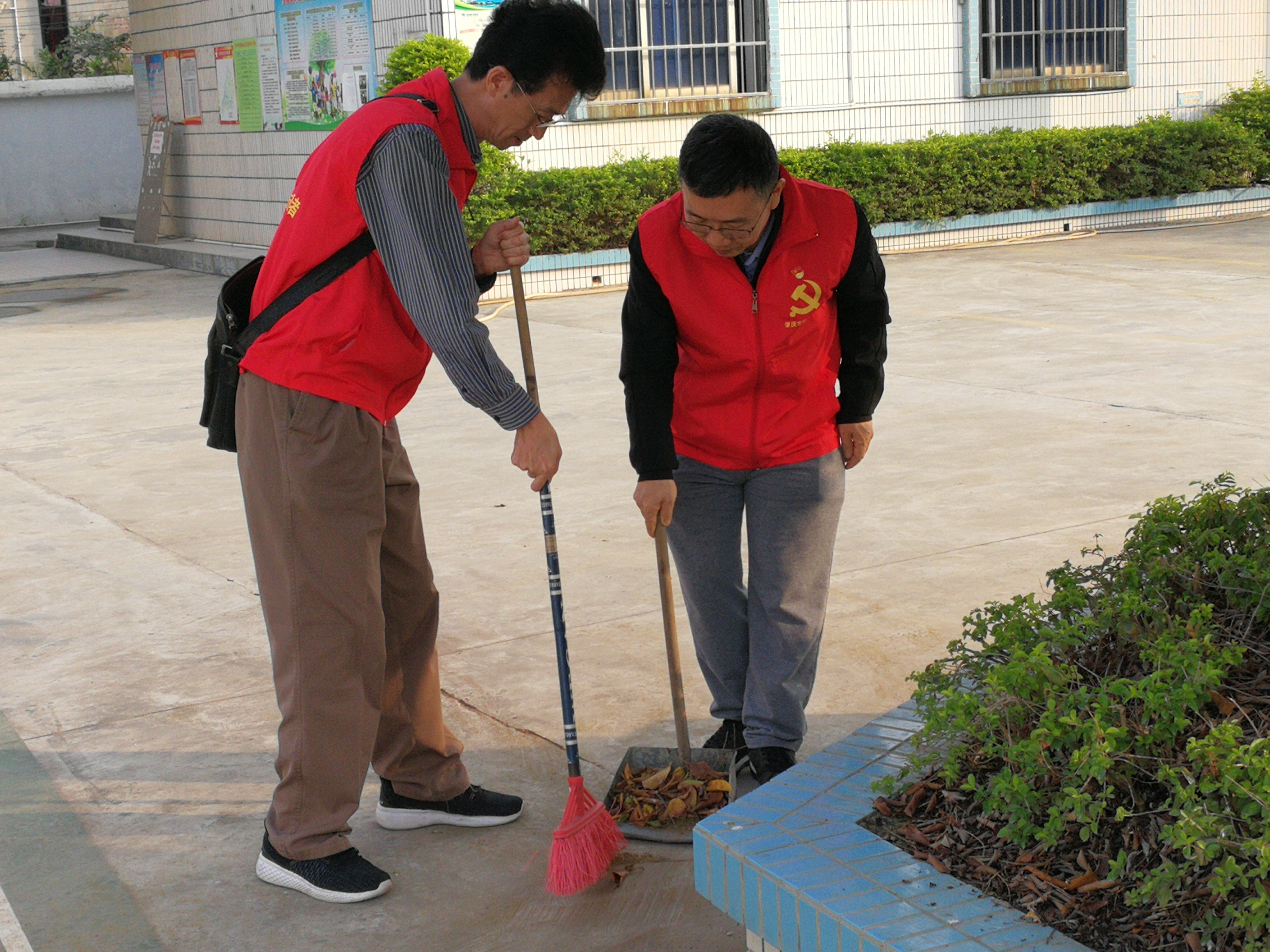 中国77779193永利的领导们互相合作清扫落叶