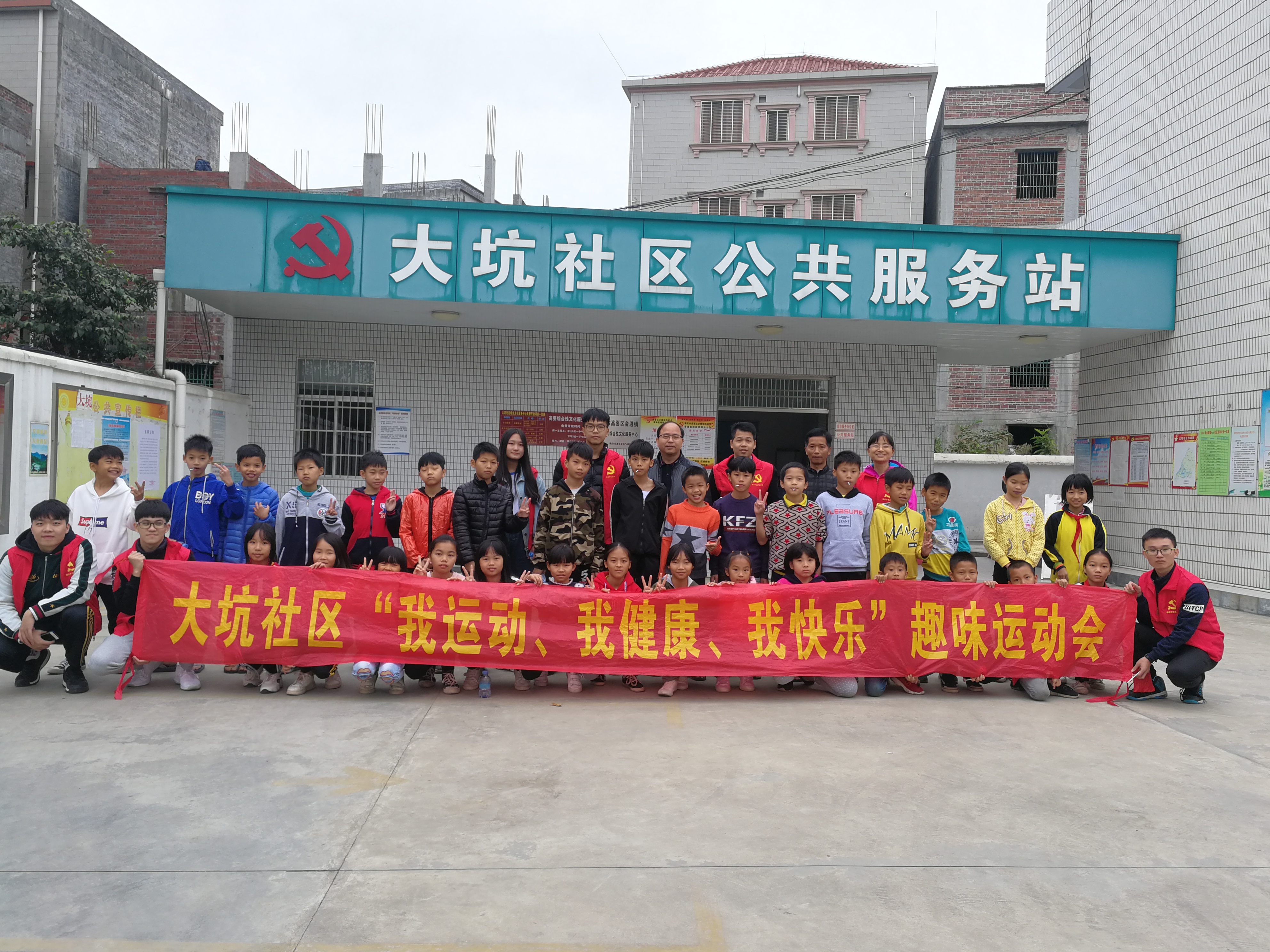 中国77779193永利创文队伍与大坑社区的学生们合影留念