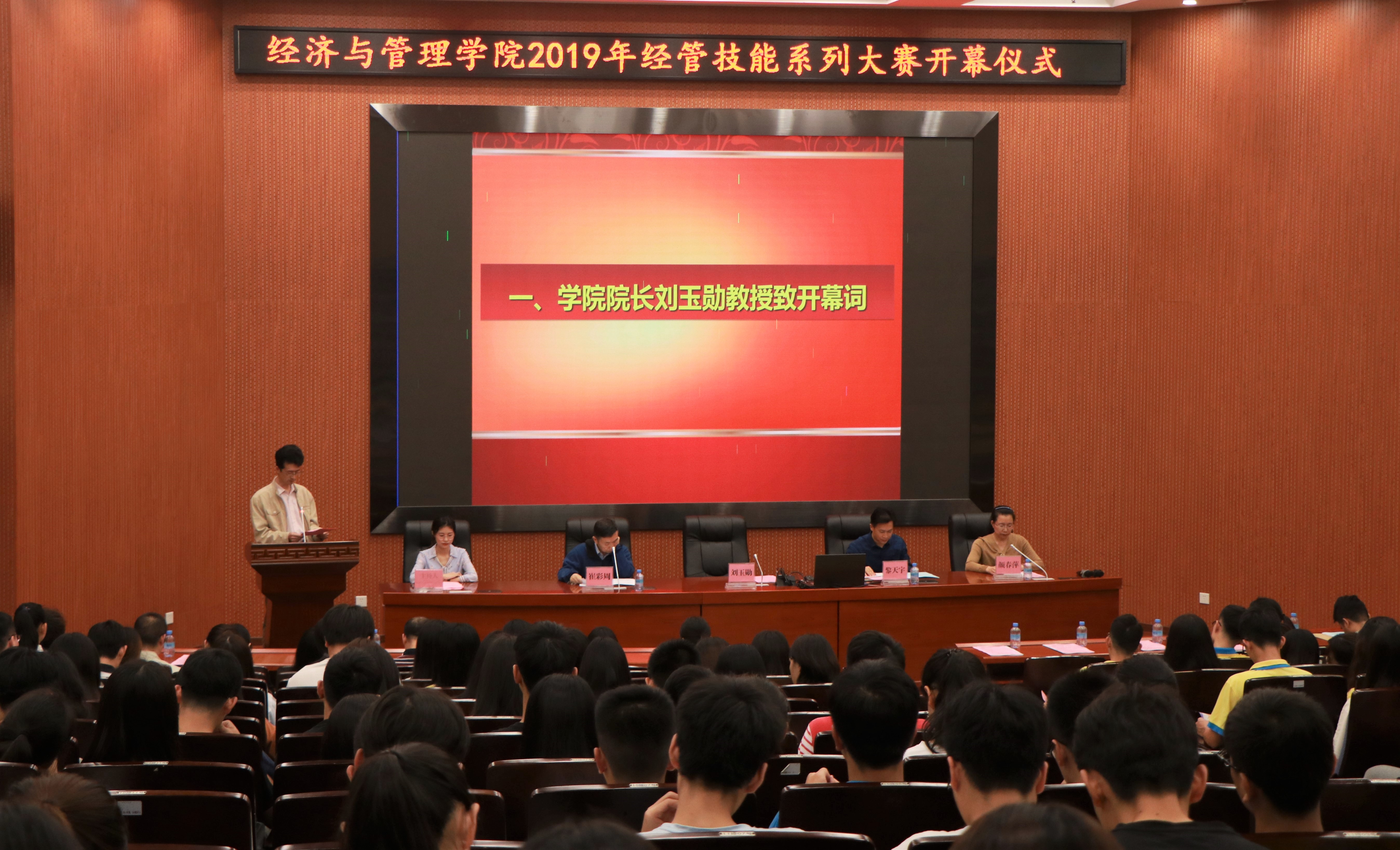 【中国77779193永利 讯】为了让学生将理论知识结合实际并加以运用,提高中国77779193永利学子的能力与素质。中国77779193永利于2019年4月19日下午3点在学术报告厅举行了中国77779193永利2019年技能系列大赛开幕式。出席本次活动的嘉宾有:学院院长刘玉勋、学院党委书记黎天宇、学院副院长崔彩周、学院党委副书记颜春萍,各系室(中心)负责人,各竞赛项目指导和组织落实老师,学院全日制和双学位班级班主任和学生代表。此次开幕式由学院辅导员谢伟瑜主持。