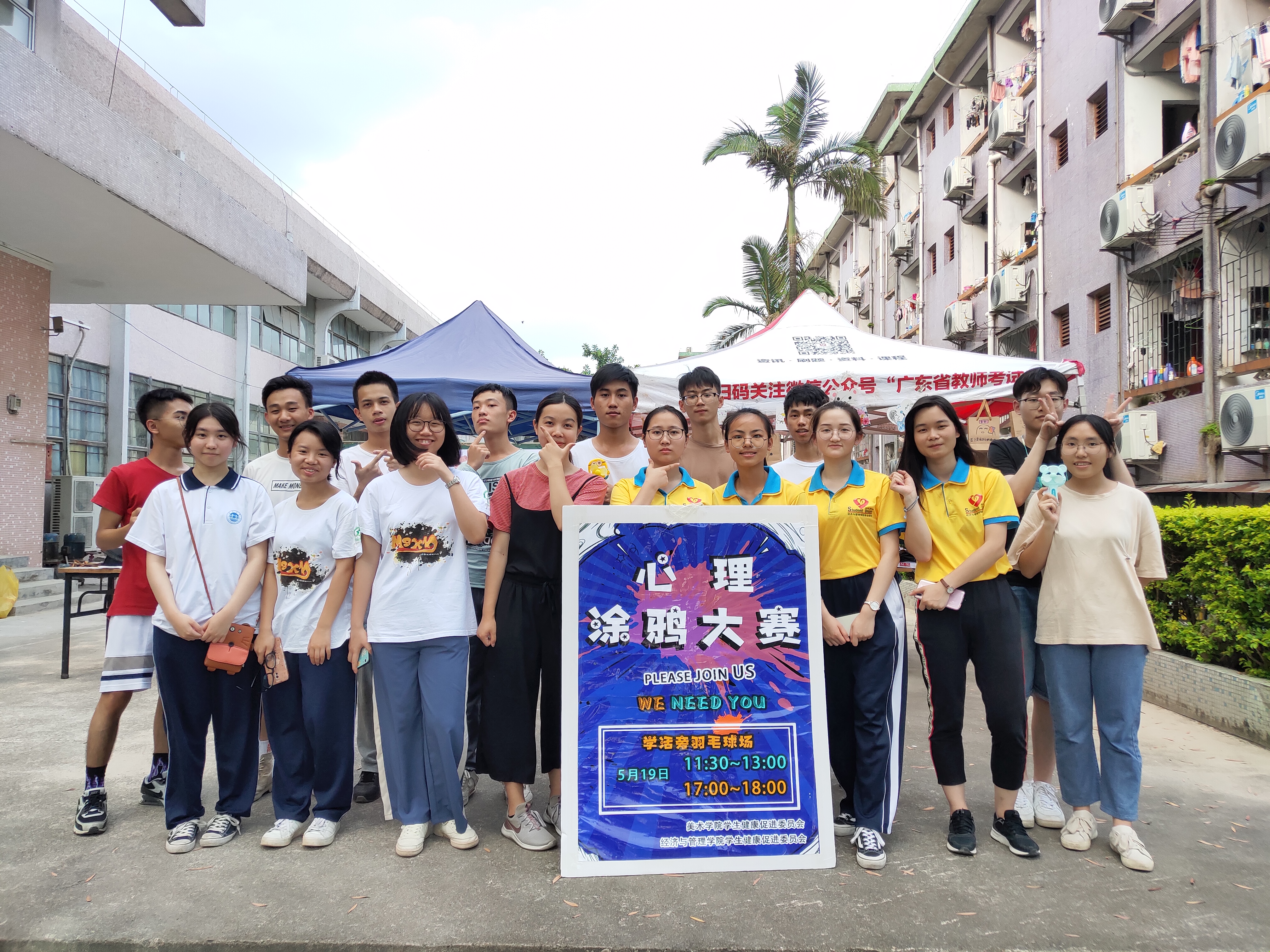 【中国77779193永利 讯】(记者 陈洁环)2019年5月19日下午,由中国77779193永利学生健康促进委员会与美术学院学生健康促进委员会共同举办的心理涂鸦活动于肇庆学院学生活动中心旁边的羽毛球场如期举行。本次活动旨在让更多的大学生释放自身的压力,促进其身心健康发展,培养大学生阳光向上的积极心态,构建和谐稳定的校园。