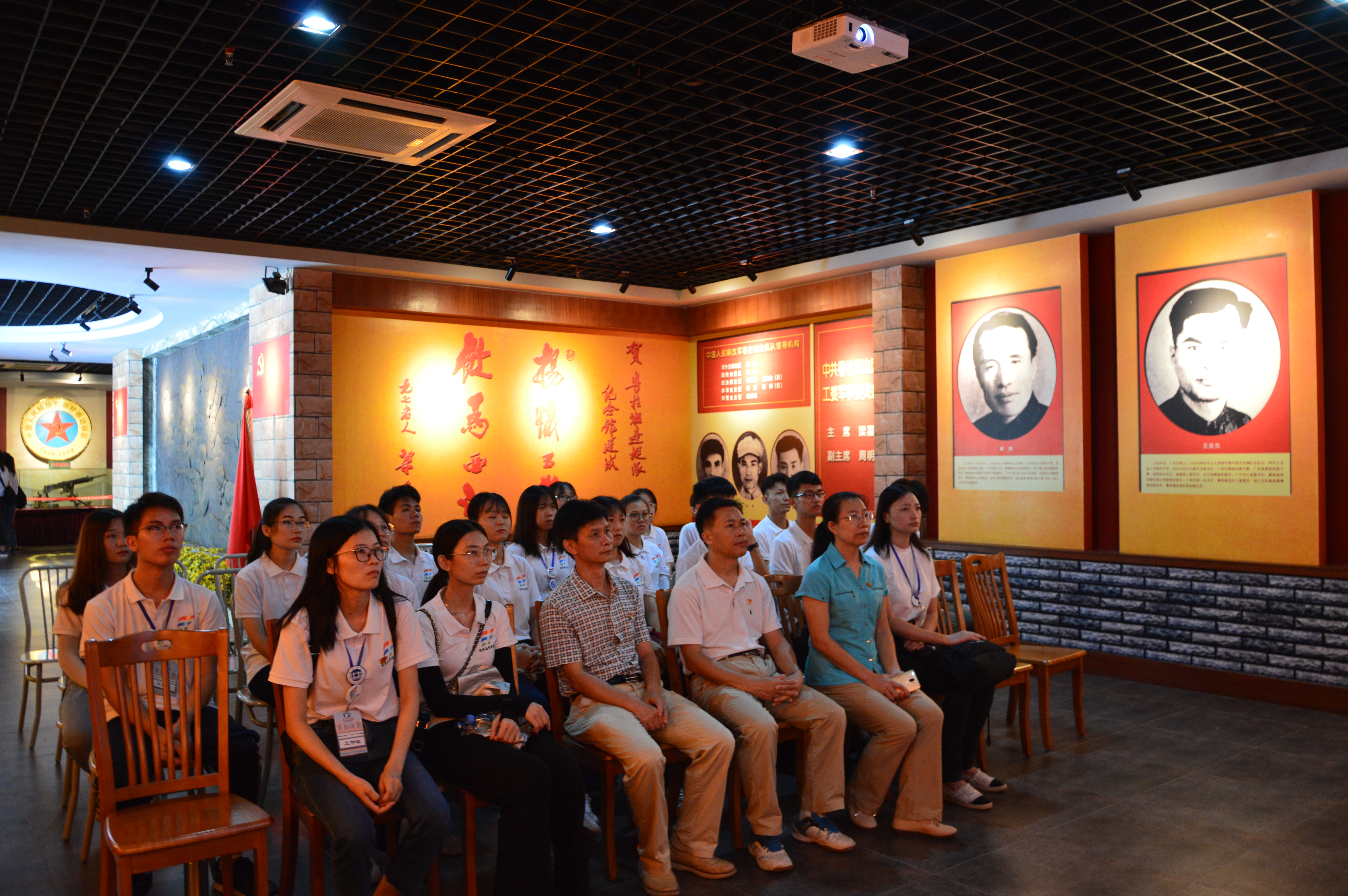 纪念馆内,展馆以视频的形式向我们介绍了粤桂湘纵队的组建过程,他们用毅力与决心筑起保卫的高墙,通过图像与声音的组合传达给我们最真实的现场,使我们被其顽强的生命力与不屈的毅力深深折服,既有精神上的鼓舞和补充,更是我们行动上学习的榜样。视频后黎天宇书记作总结发言,鼓励同学学习革命纵队的红色精神,缅怀革命烈士,继承红军不怕苦、不怕累的奋斗精神,不论是“三下乡”还是日常生活,都要克服困难,砥砺前行,牢记历史,在实践中不断的充实自己,得到提高。