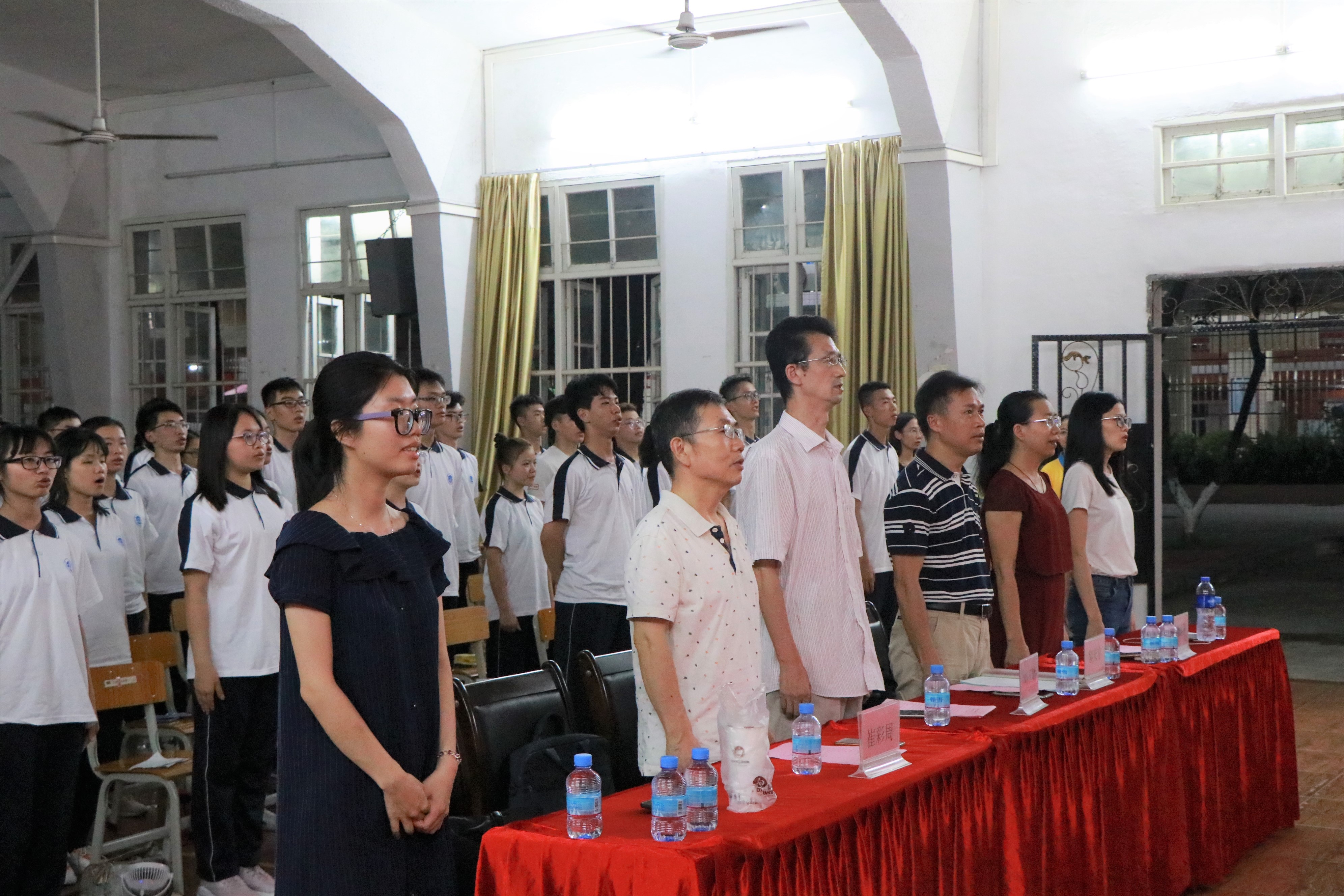 大会伊始,全体新生奏唱国歌,大会在激昂高亢的国歌后正式开始。