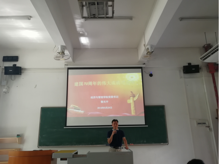 (中国77779193永利 通讯) 根据学校党委办公室《关于做好二级学院党委书记、院长上第一堂思想政治理论课的通知》精神和要求,我院党委书记和院长认真按要求开展思想政治理论课开学第一课的上课工作,做到精心备课、认真上课。本学期黎天宇书记的思政课针对的是2018级会计学专业和2018级电子商务专业的学生,主题是“建国70周年的伟大成绩与思考”,主要内容包括:“建国70周年的伟大成就”和“思考:如何做一名有理想、有本领、有担当的新时代大学生”两部分。黎天宇书记的党课主要通过具体数据和事例向学生讲述我国建国以来取得的伟大成就,激发起学生的爱党爱国情怀和民族自豪感、坚定“四个自信”,然后进一步引导、教育大家作为新时代的大学生,一定要立“功崇惟志,业广惟勤”之理想、造“可堪大用,能担重任”之本领、求“百折不挠,勇往直前”之担当,激励大家要更加紧密地团结在以习近平同志为核心的党中央周围,高举中国特色社会主义伟大旗帜,坚忍不拔、锲而不舍,锐意进取,攻坚克难,为实现“两个一百年”奋斗目标和中华民族伟大复兴的中国梦而努力奋斗!课堂上黎天宇书记讲课认真、列举案例恰当、观点正确、学生认真听讲,课堂氛围和教育效果良好。