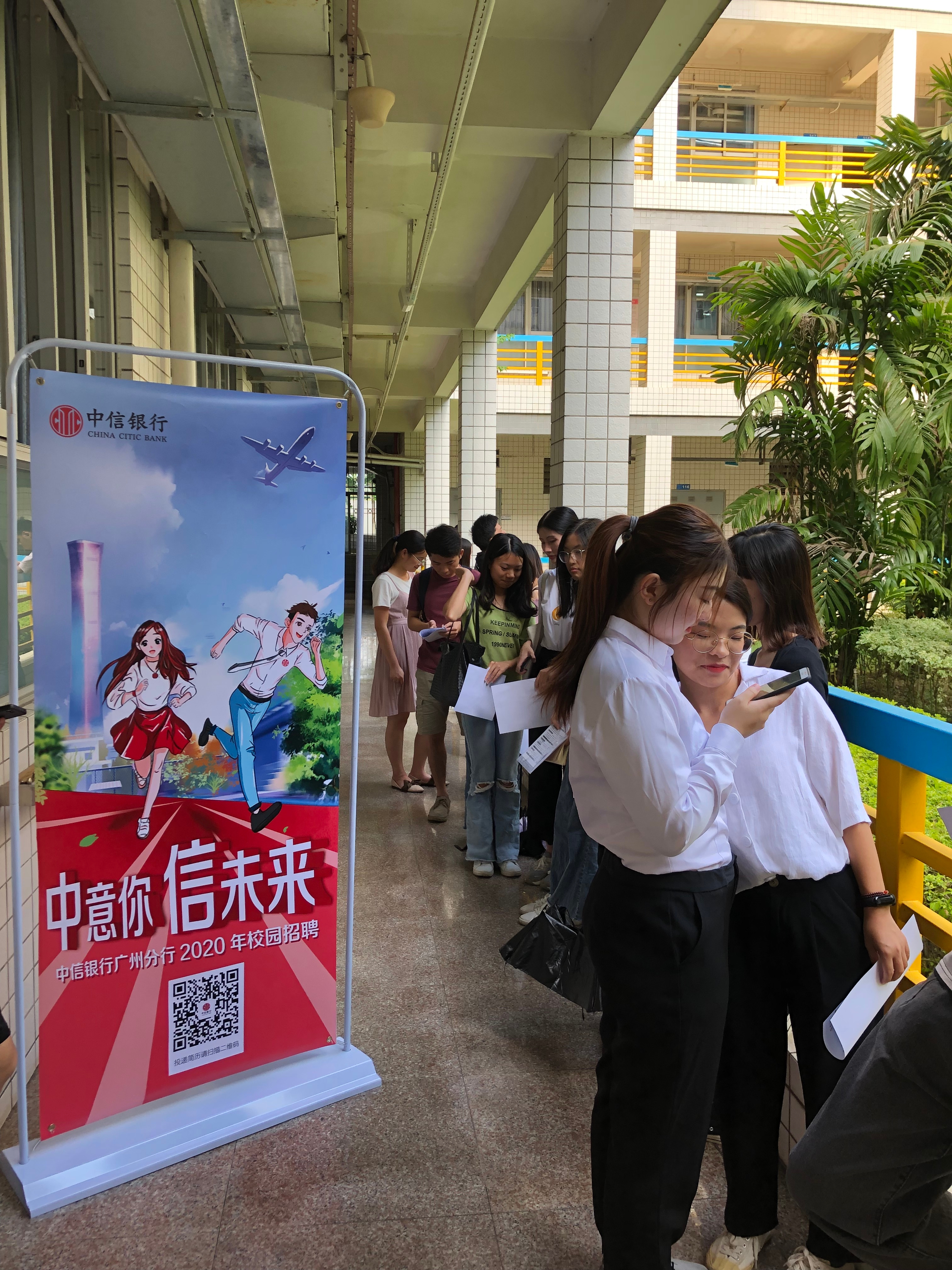 宣讲会上,银行招聘人员为我院学子详细介绍了中信银行的企业文化、员工薪酬福利以及招聘的具体流程等。宣讲会结束后,同学们有序在教室外排队等待面试。
