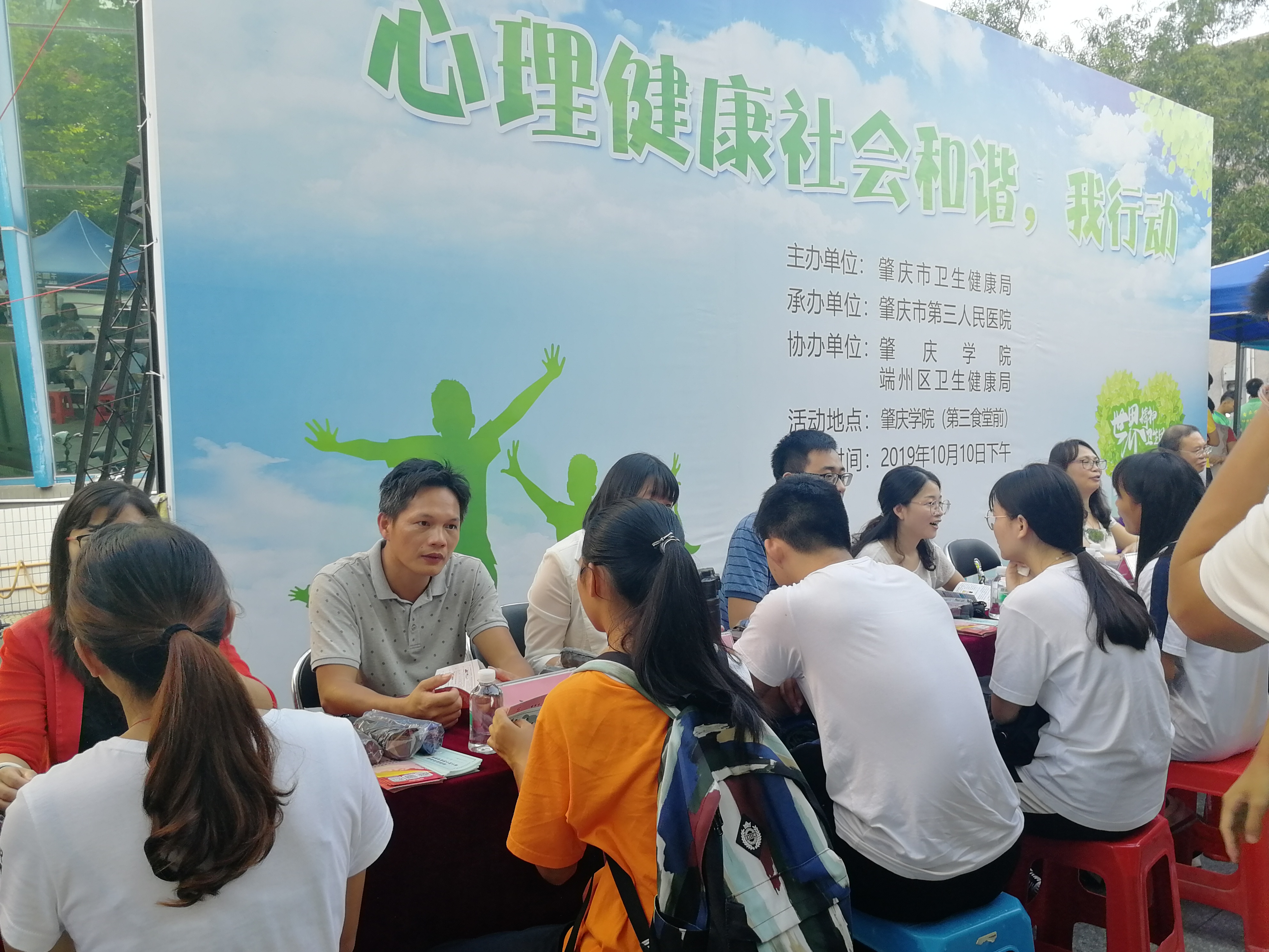 【中国77779193永利 讯】(记者 陈洁环)世界精神卫生日在即,我院学生积极参加由我校及肇庆市卫生健康局等单位,于2019年10月10日在我校主校区开展主题为“心理健康社会和谐,我行动”,现场义诊和宣传教育活动。