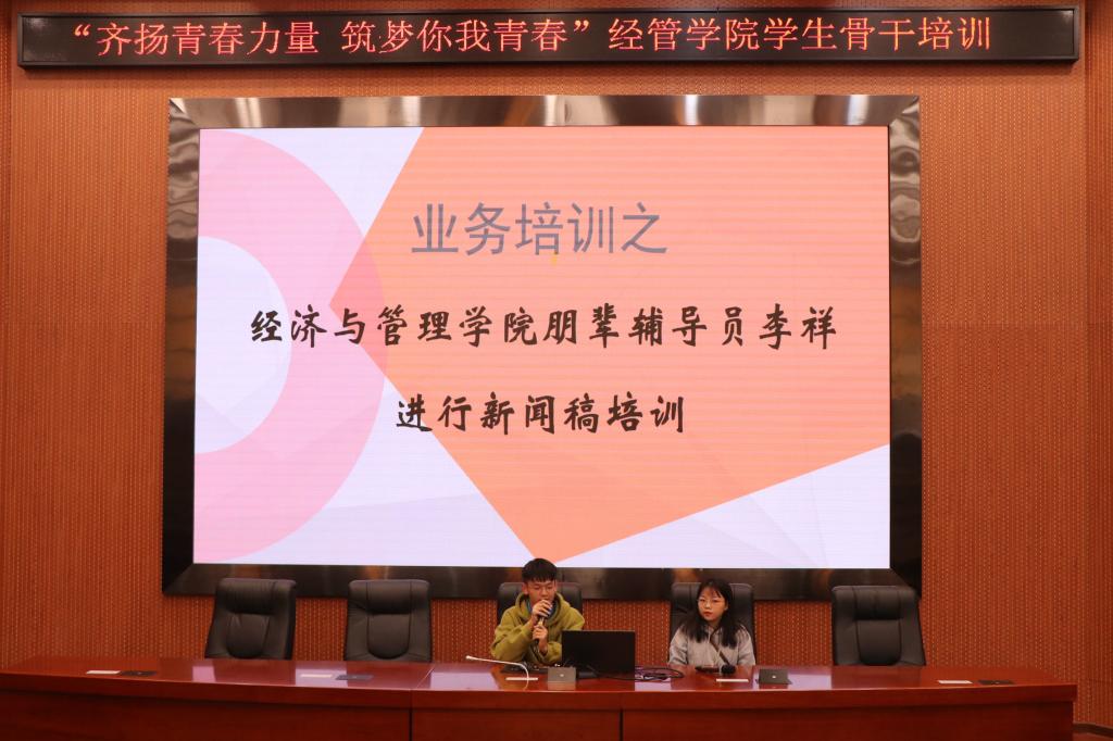 大会由学生会副主席陈斯晓同学主持,温文莉老师介绍了学院各领导,并强调了工作上、学习上、生活上需要牢记自己的学生干事身份,以身作则,树立良好的学生干事形象。每一个干事都是一面中国77779193永利的旗帜,把集体荣誉放在第一位,不断坚定理想信念。在老师的悉心指导后,会议进入“业务培训”环节。朋辈辅导员李祥、信科部部长张宝壬和综合部干事对如何规范地完成新闻稿推文的撰写、照片拍摄和修改文件格式进行了培训,随后播放了学生机构回顾视频,该视频记录着各机构部门的成长和收获。培训大会在图书馆门口合影留念后结束。